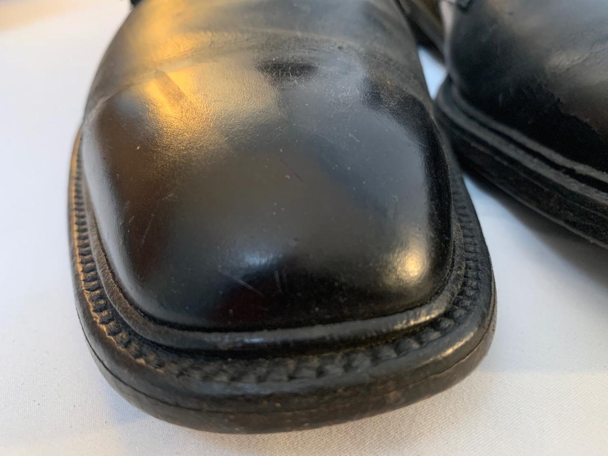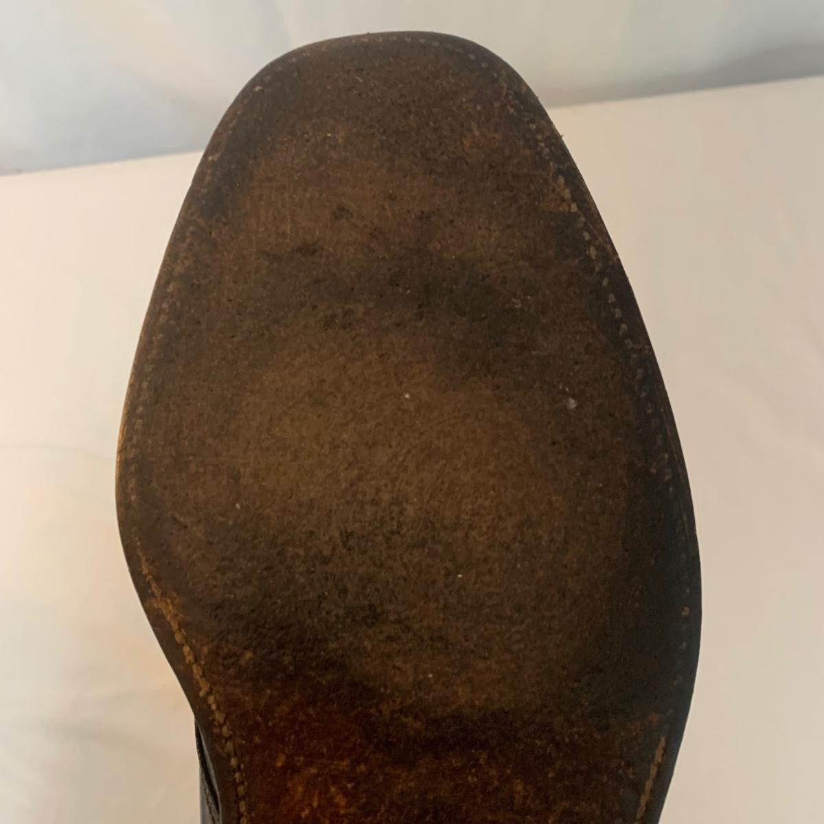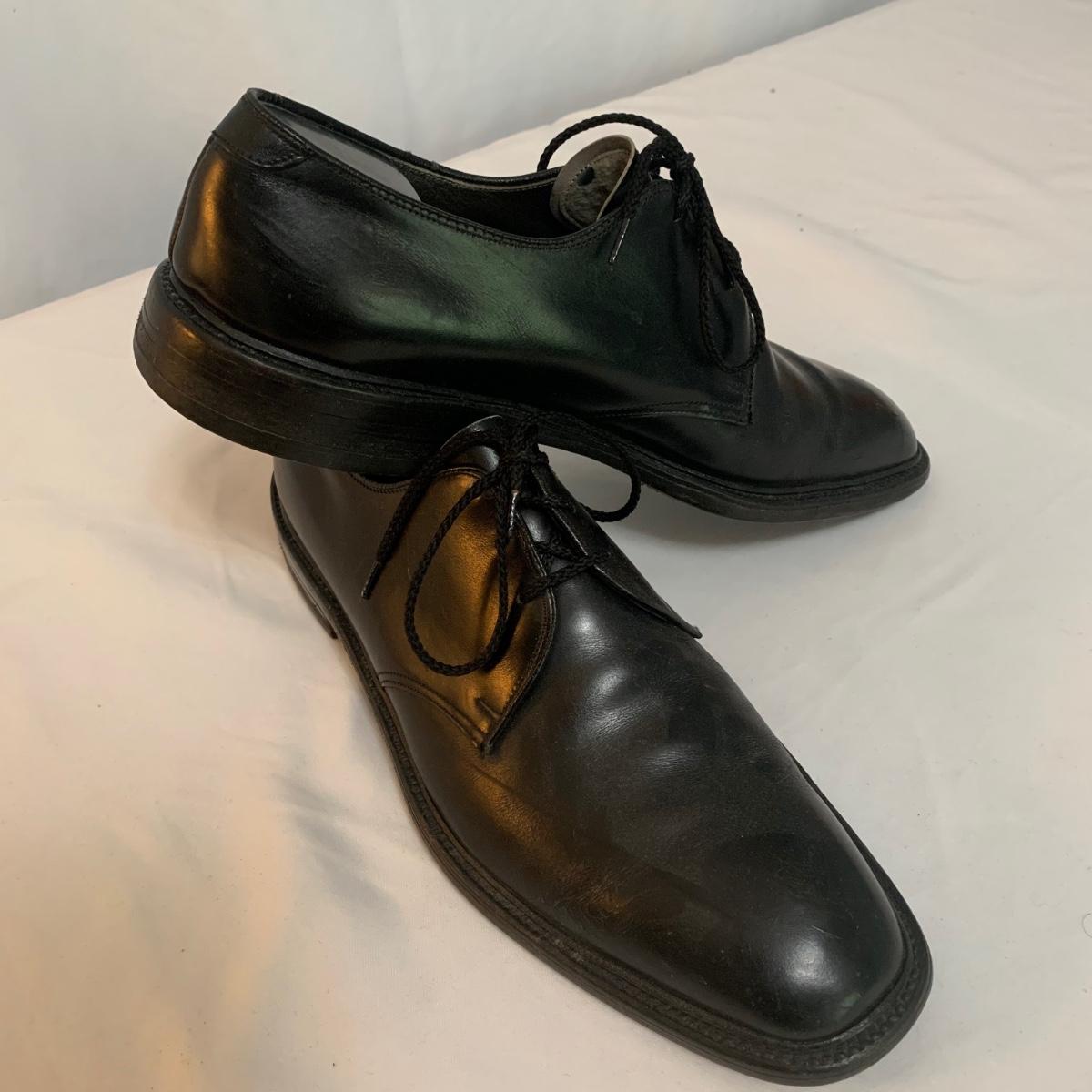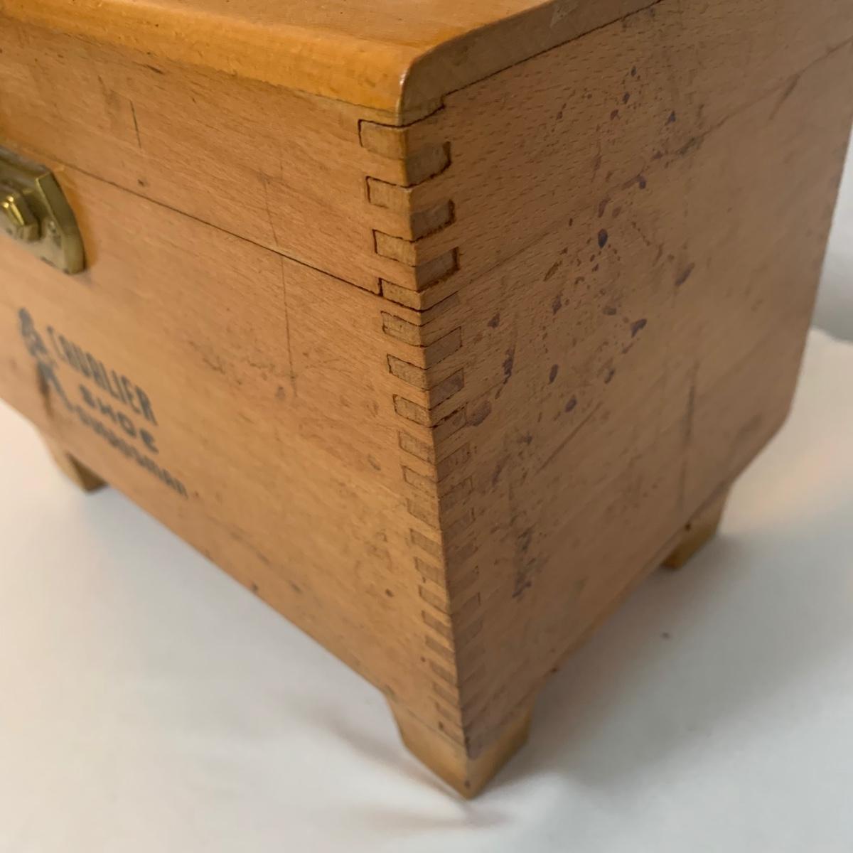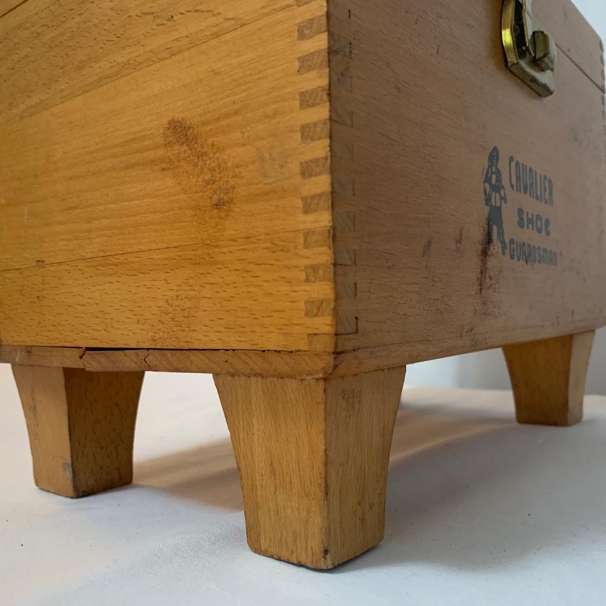 Men’s size 10.5 Cordwainer Arch Preservers with two shoe trees, and Cavalier Shoe Guardsmen Valet box. Cordwainer shoes have signs of wear on the interior with minor exterior blemishes. They have been stored with shoe trees and appear to be in good condition. Shoe Guardsmen Valet box is crafted with dovetail joinery. Box’s hardware is fully functioning and in good condition. The box interior has expected staining from shoe polish and brushes. Box contains three brushes and shoe horn. Wood shoe trees are in good condition and fully functional. Shipping available.