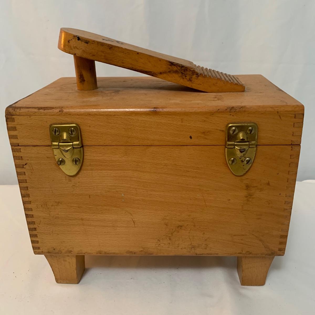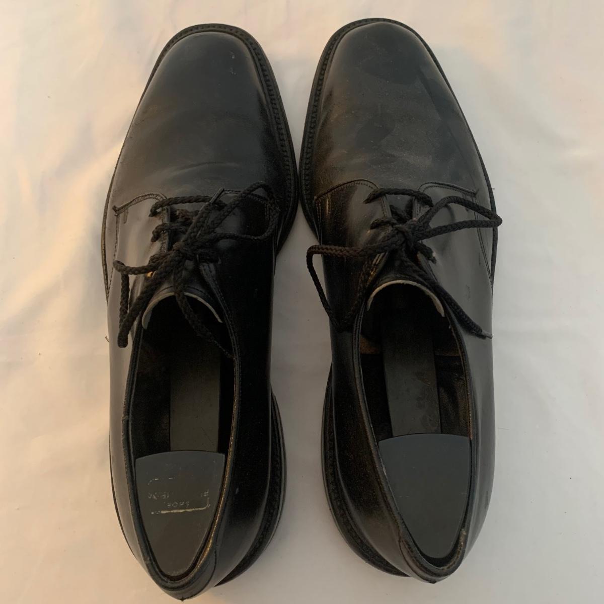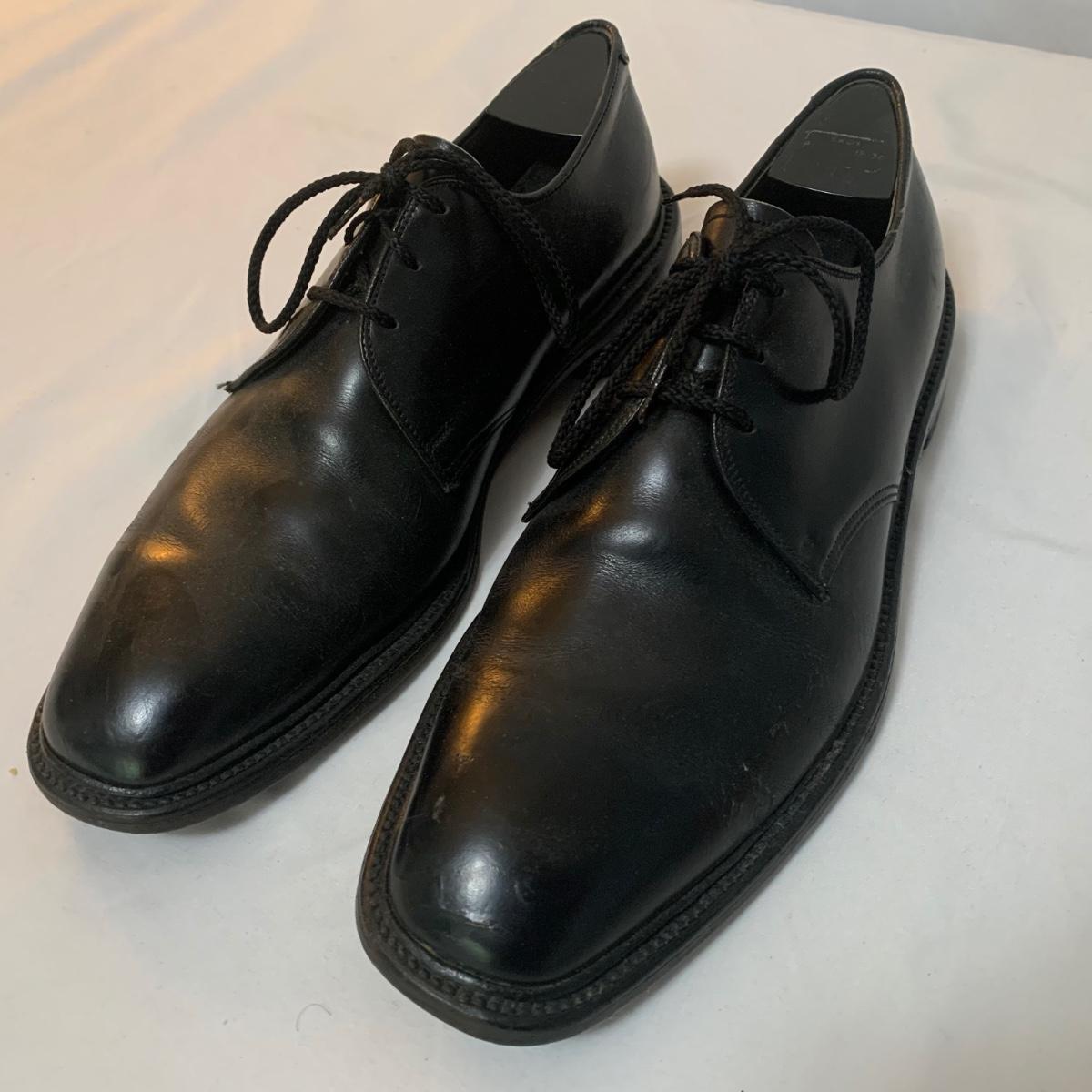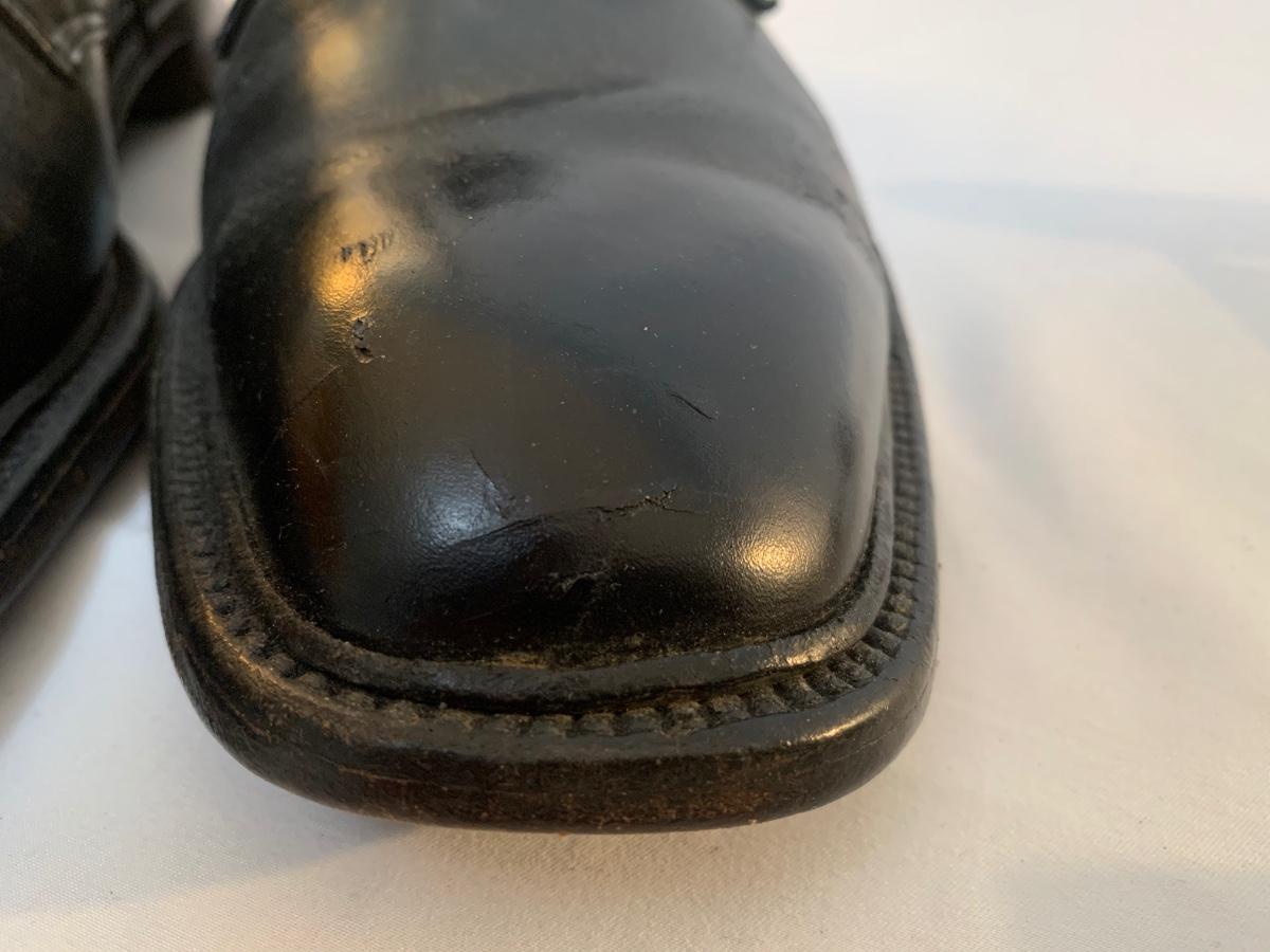 Men’s size 10.5 Cordwainer Arch Preservers with two shoe trees, and Cavalier Shoe Guardsmen Valet box. Cordwainer shoes have signs of wear on the interior with minor exterior blemishes. They have been stored with shoe trees and appear to be in good condition. Shoe Guardsmen Valet box is crafted with dovetail joinery. Box’s hardware is fully functioning and in good condition. The box interior has expected staining from shoe polish and brushes. Box contains three brushes and shoe horn. Wood shoe trees are in good condition and fully functional. Shipping available.