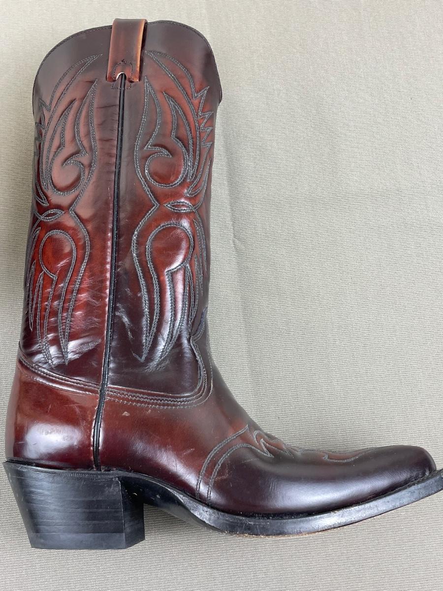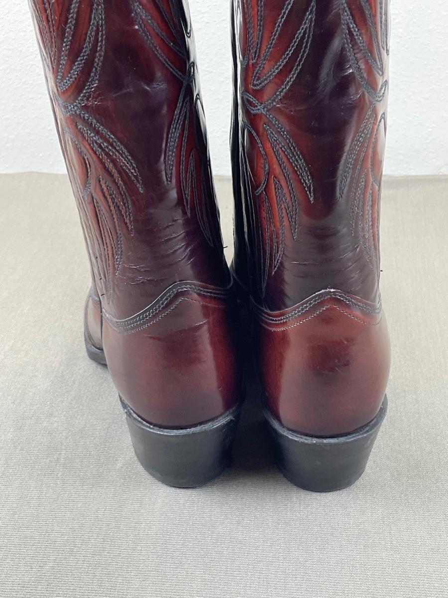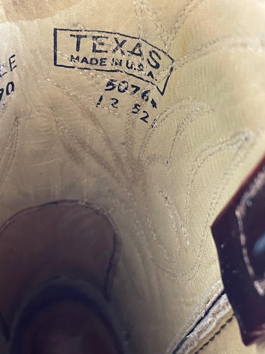 Texas Royal Handcrafted leather boots. Stamped 8 1/2 EEE but fits a men’s size 9.5-10. Stacked heel. Excellent condition.