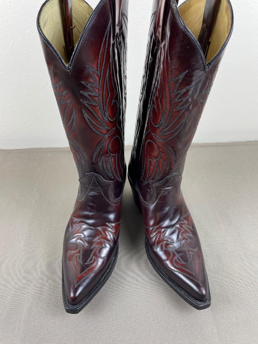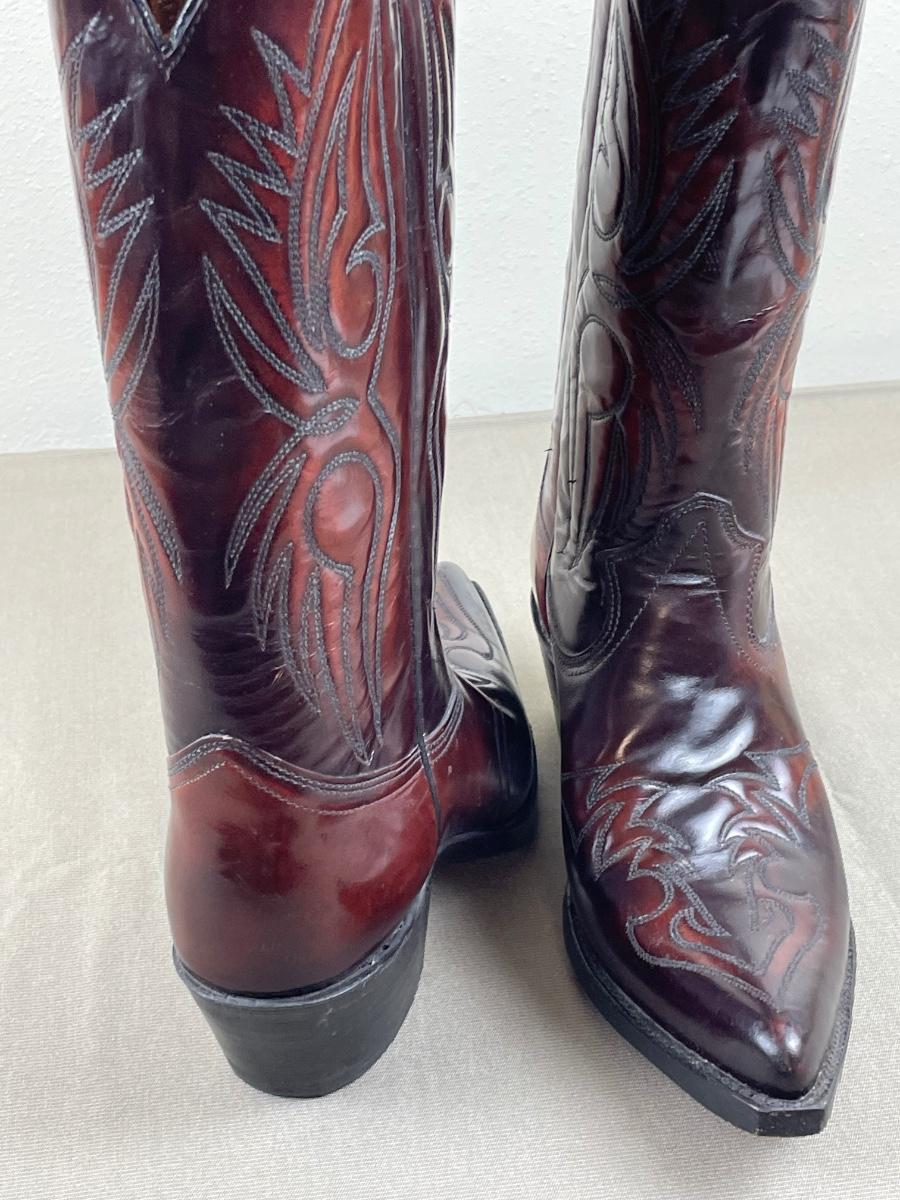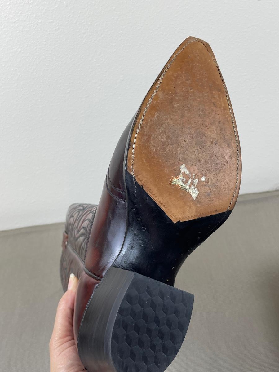 Texas Royal Handcrafted leather boots. Stamped 8 1/2 EEE but fits a men’s size 9.5-10. Stacked heel. Excellent condition.