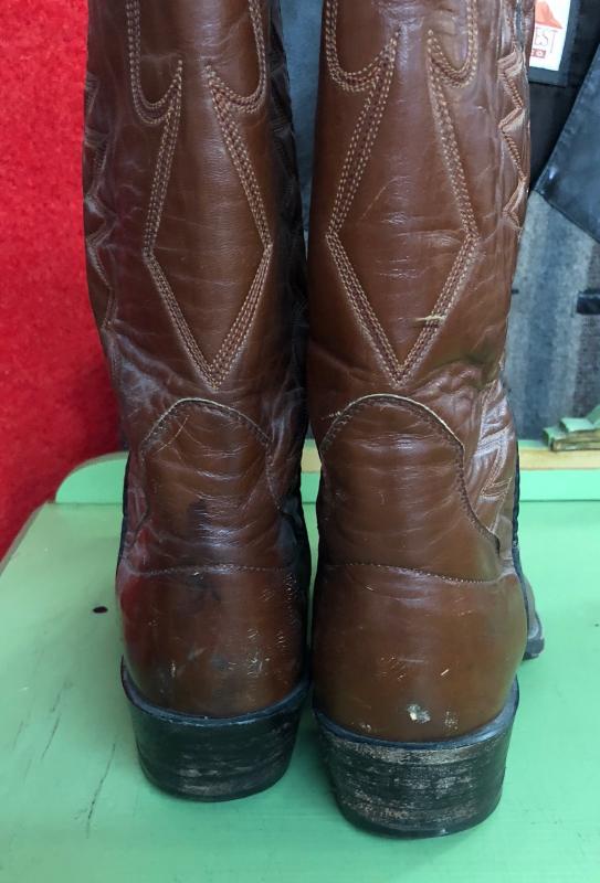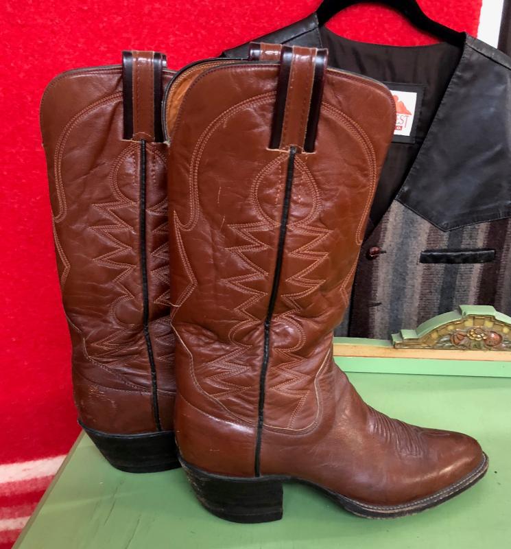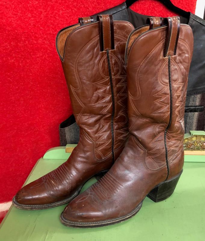Here are a pair of pre-owned men's cowboy boots...Size 8 1/2...Mary Sanders leather...