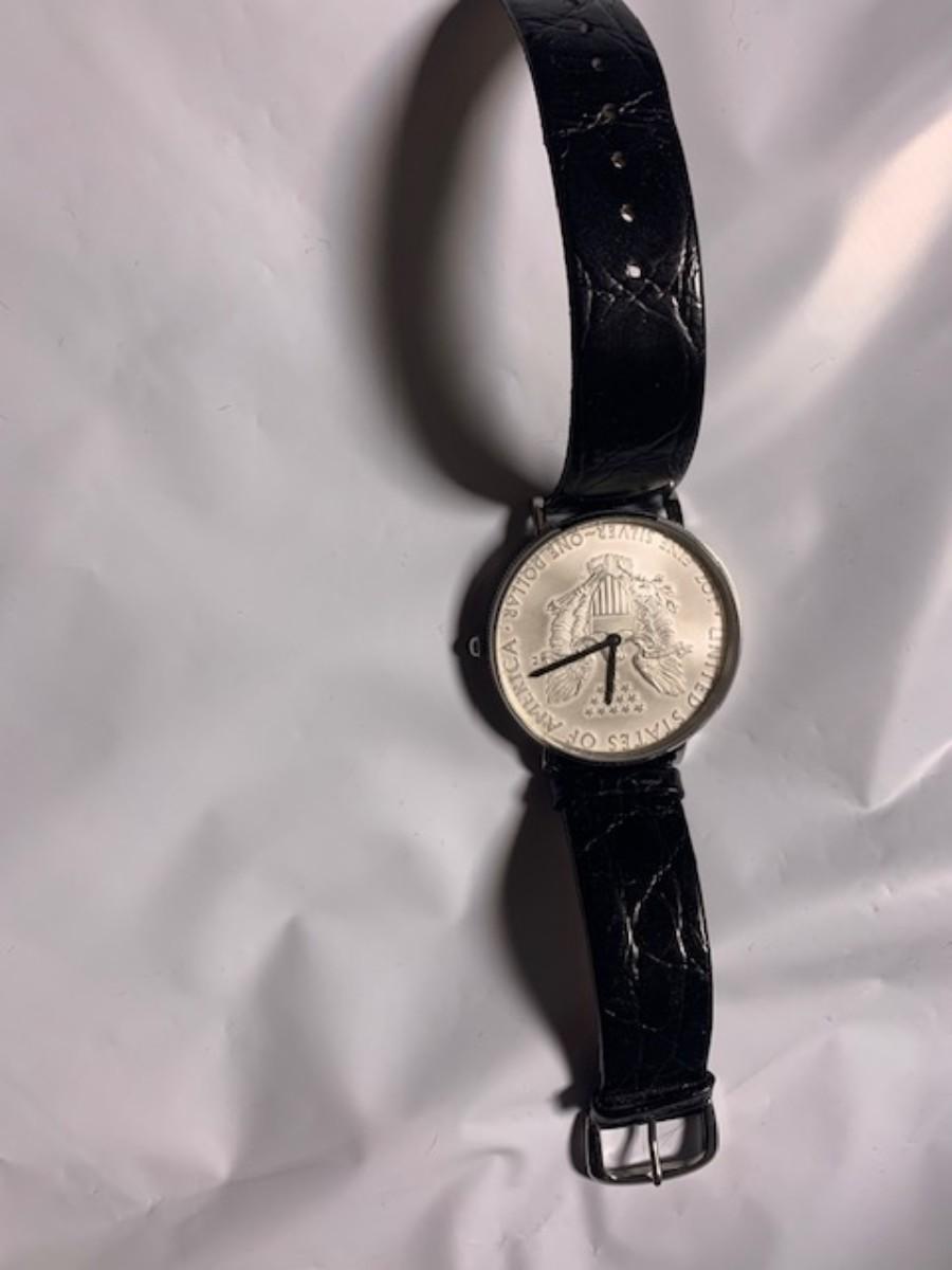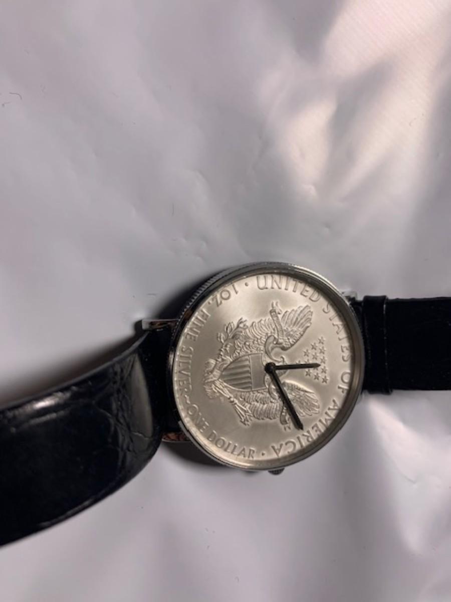 Men's Croton Watch With 1oz Fine Silver Dolar Coin Watch Great condition