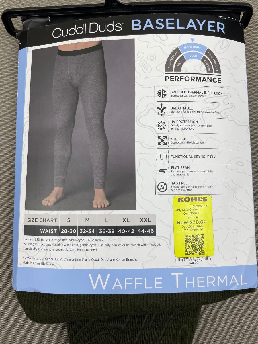 Men’s CuddlDuds Waffle Thermal Baselayer Pant XL
