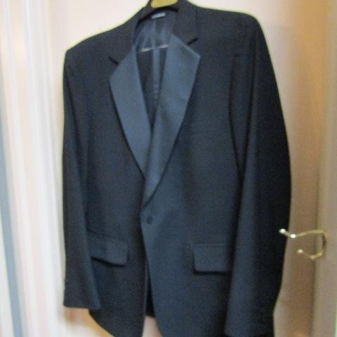 THERE ARE MANY SUIT COATS AND 2 PIECE SUITS, I DID NOT SEE A SIZE BUT THE SHIRTS AND COATS ARE LARGE AND XLARGE