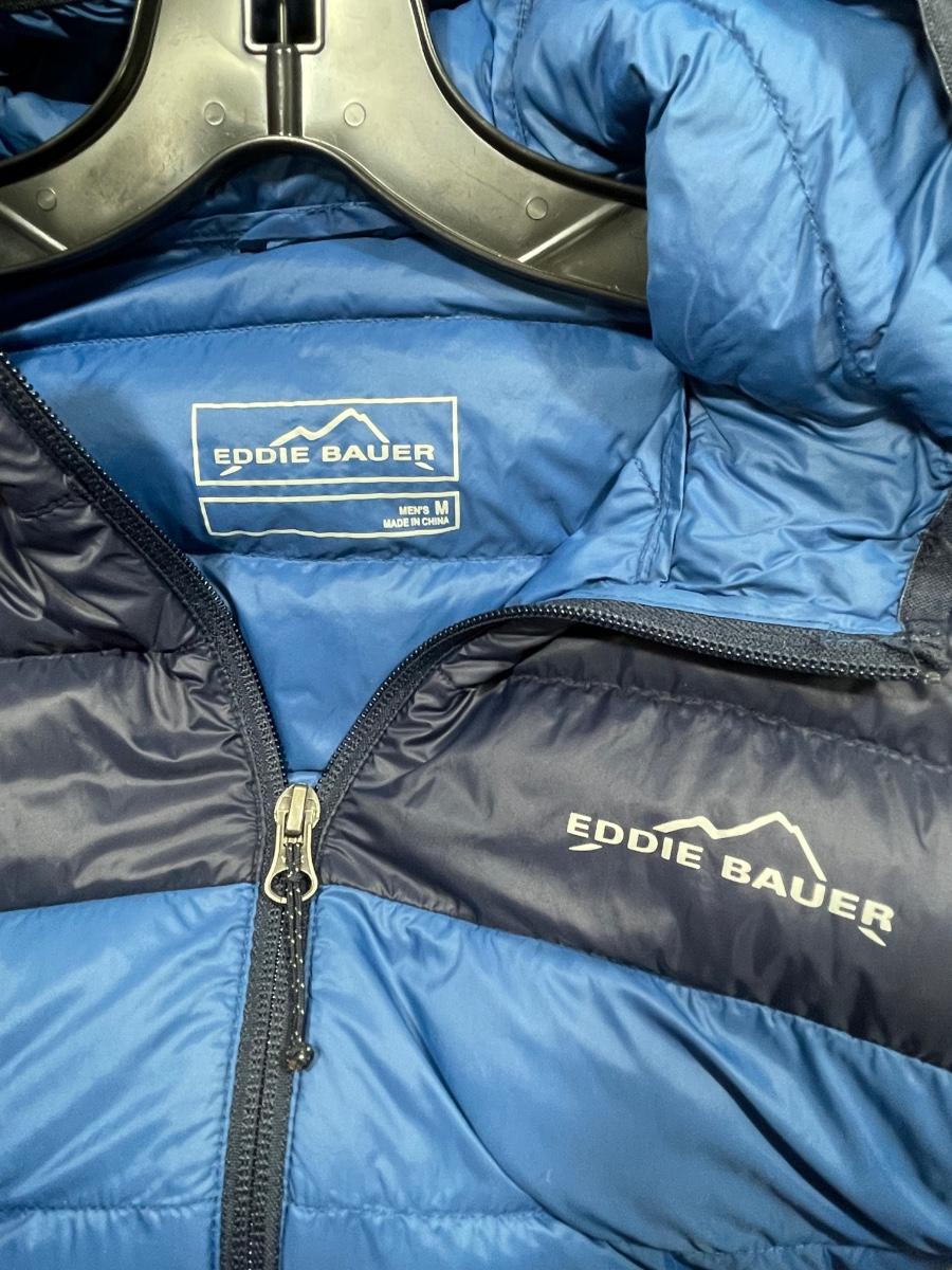 Size medium, 80% down filled. Light weight packable jacket. Not for below zero weather. Excellent condition.