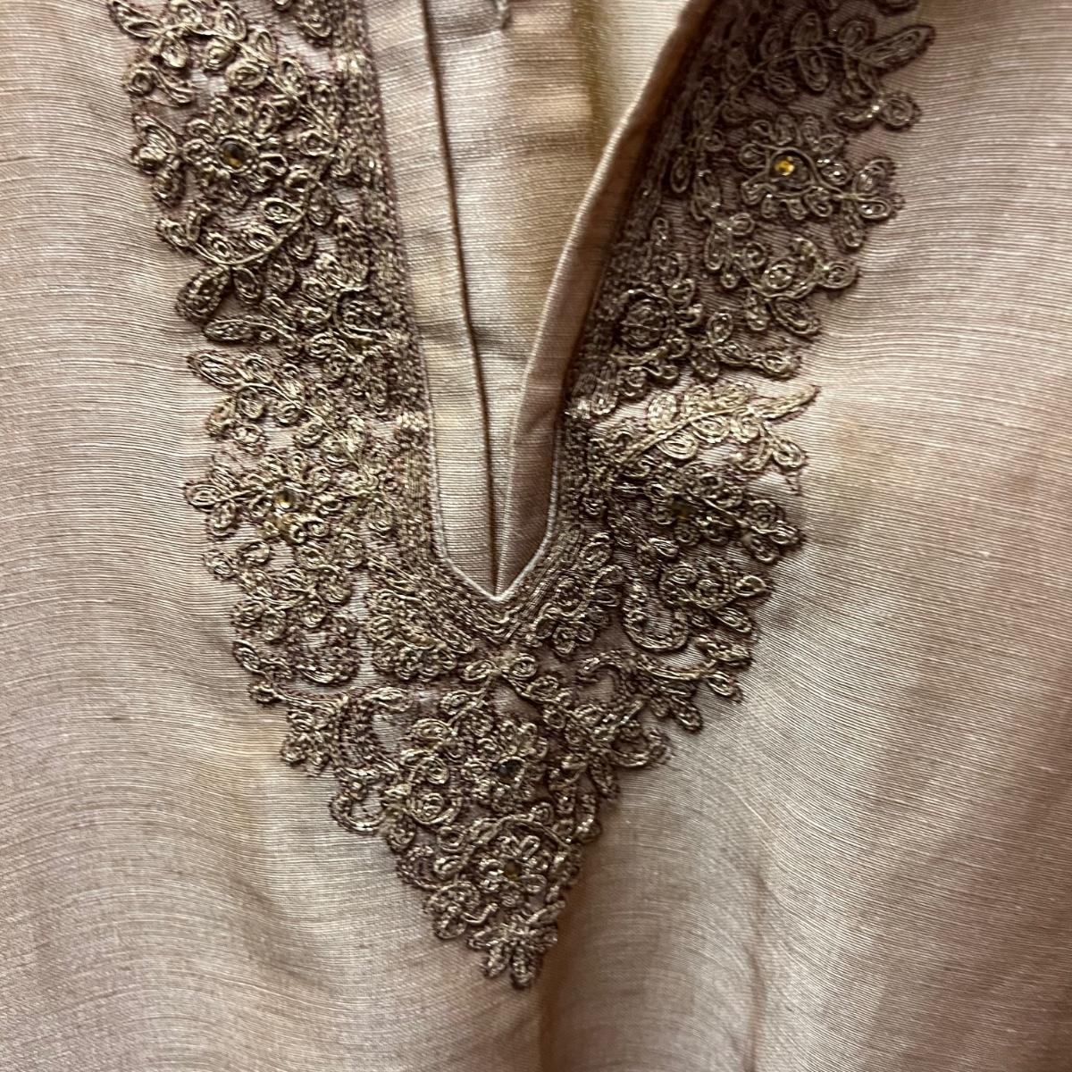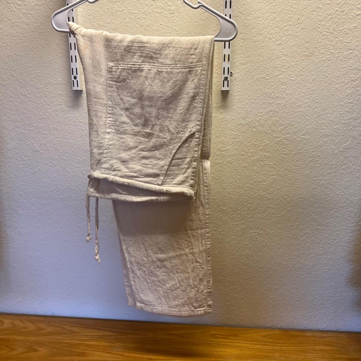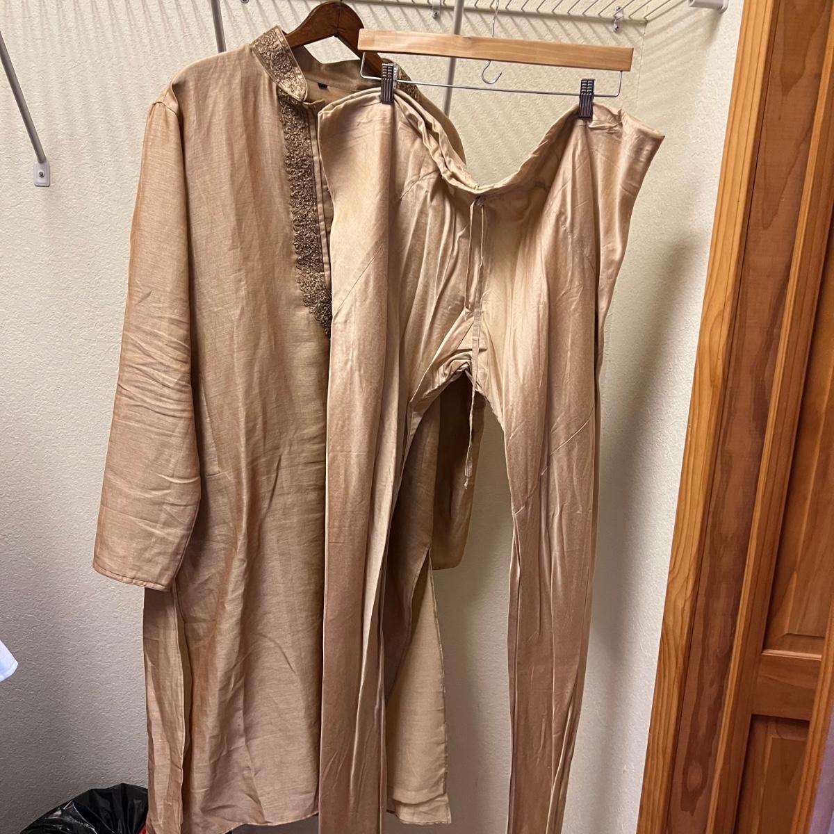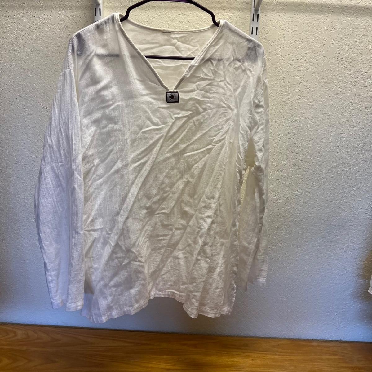 An assortment of very unique garments, linen and silk like material. Many of the items do not have labels or size. Where size was available it was photographed. Six shirts and three pants.