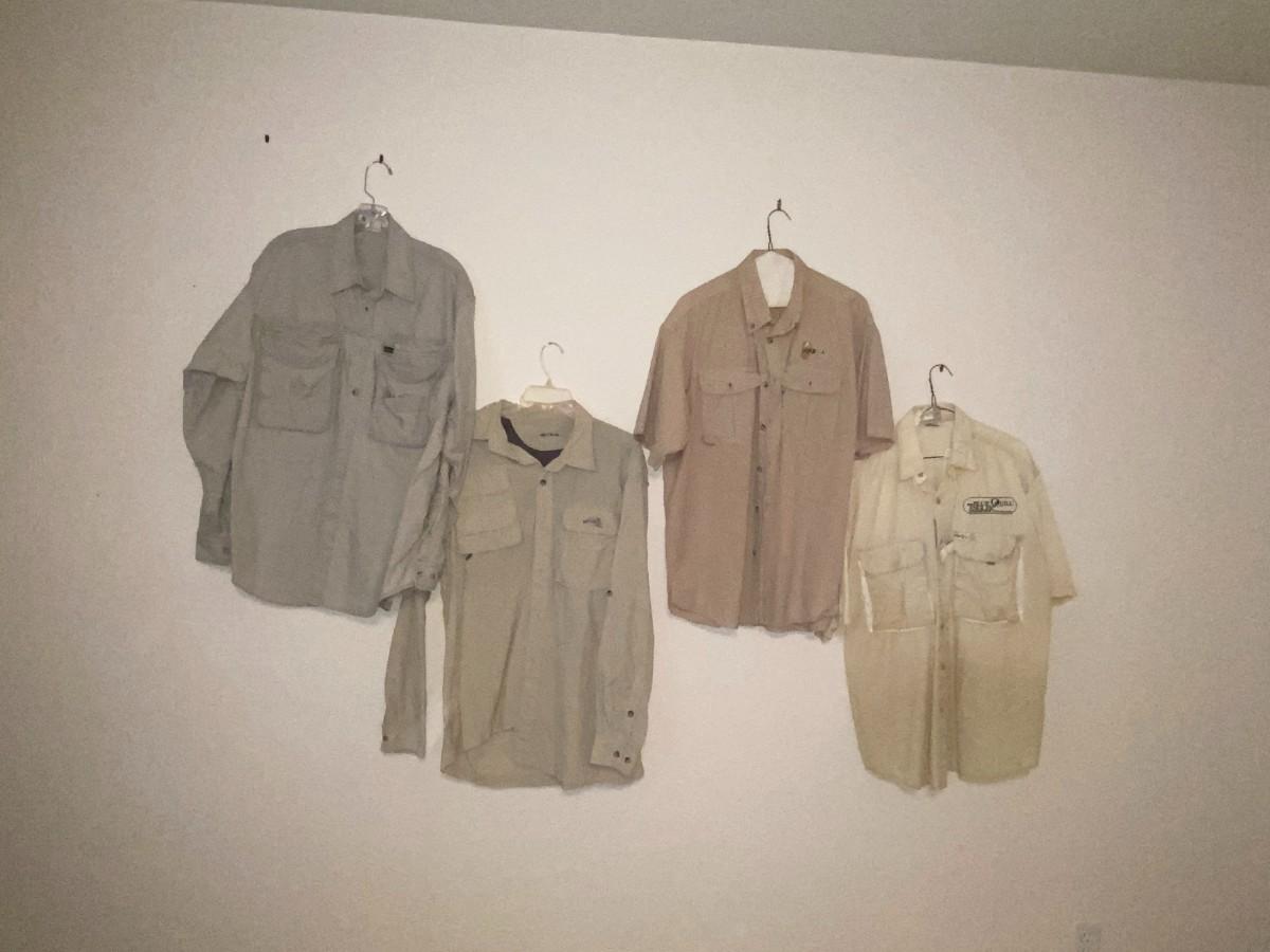 MENS COLUMBIA, NATURAL GEAR AND OTHER ANGLERS SHIRTS SIZE MED-LARGE