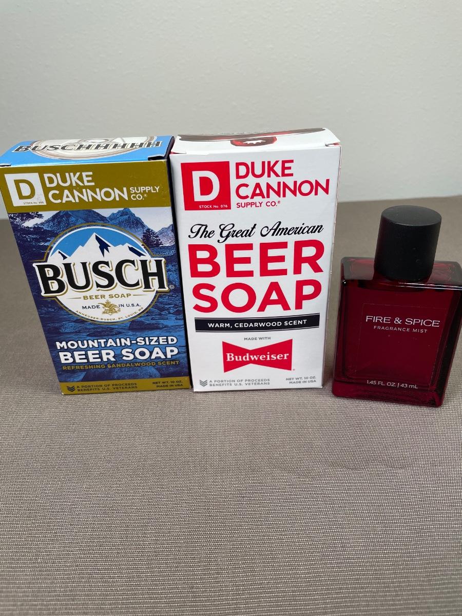 Duke Cannon NIB beer soap. These are huge 10 oz bars. Fragrance bottle is nearly full.