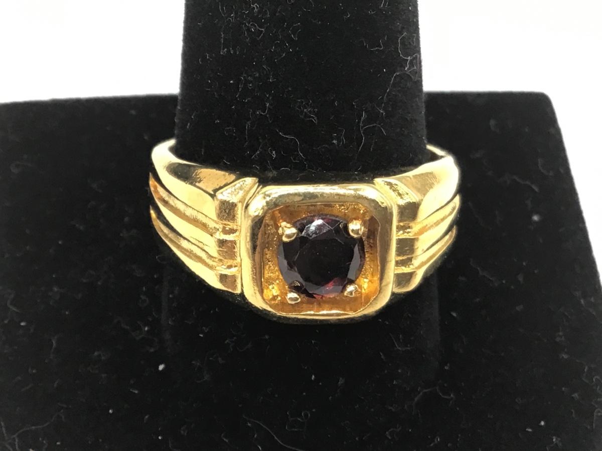 Mens Genuine Garnet 14 ktGold plated Ring