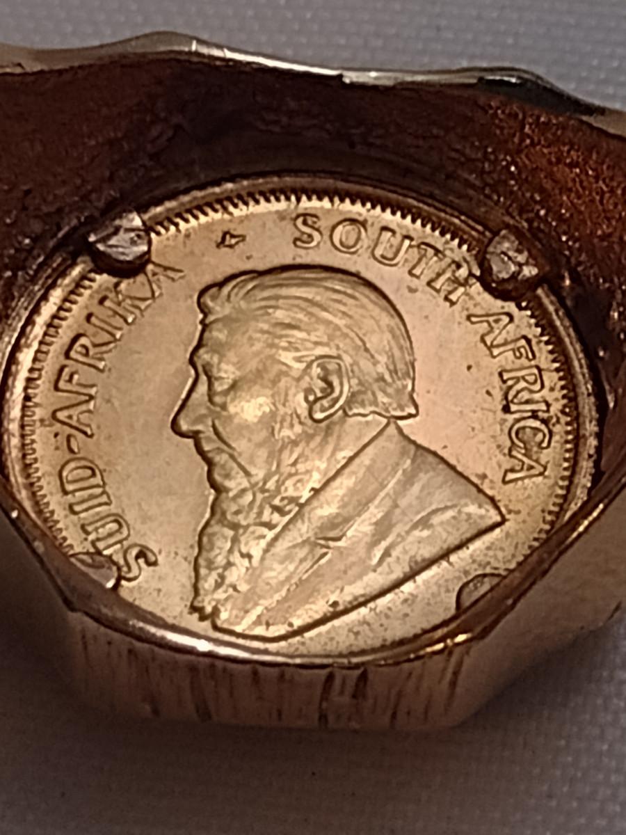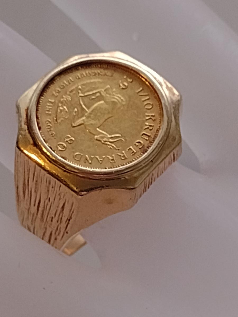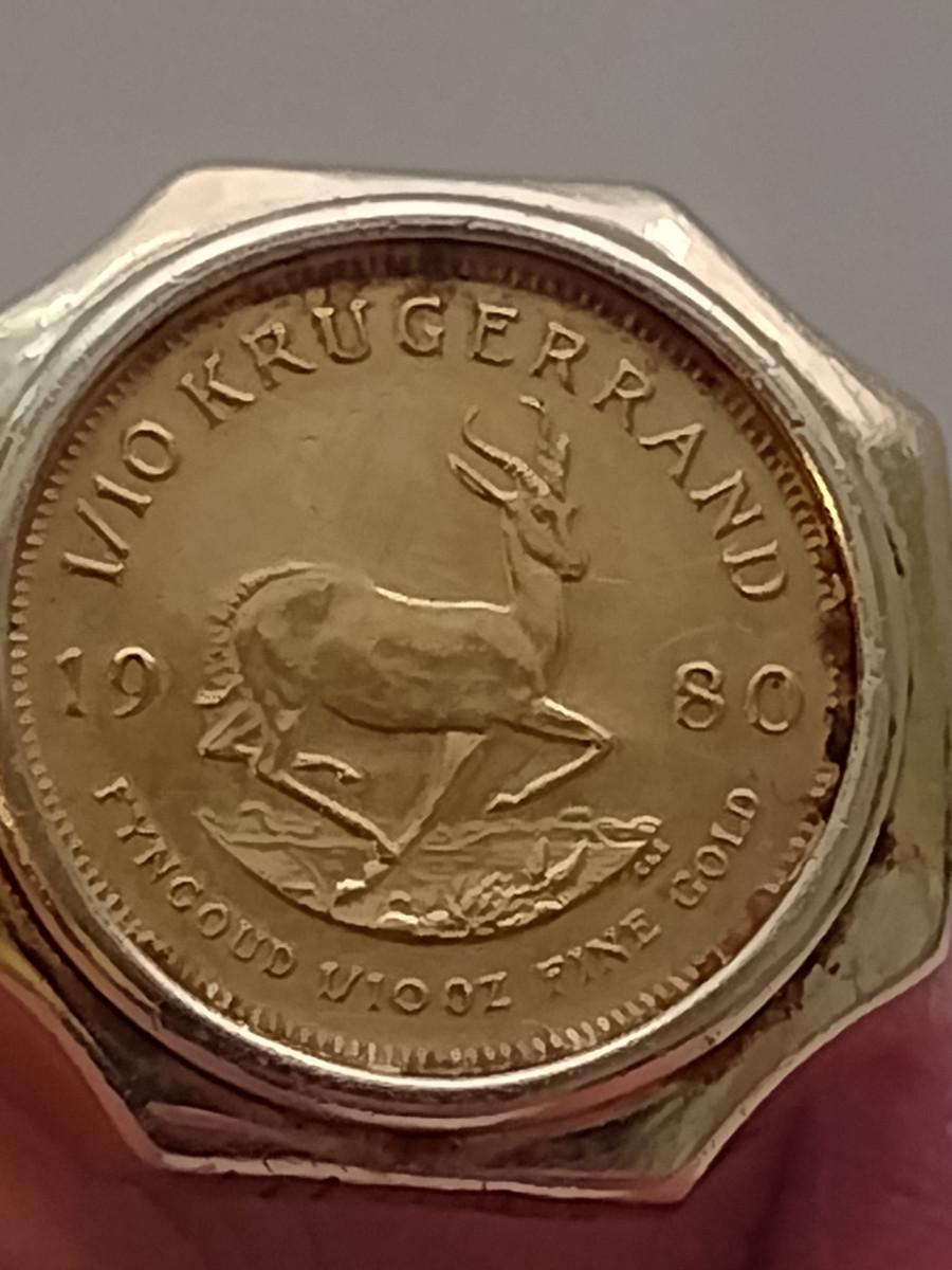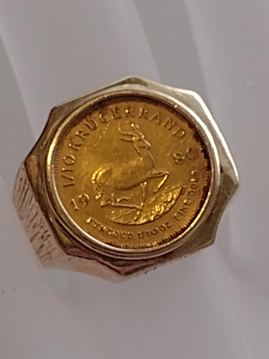 Men's Gold Ring with Mounted 1/10 Krugerand Coin- Size 12 1/2- Total Weight Approx 13.8 Grams (#2)