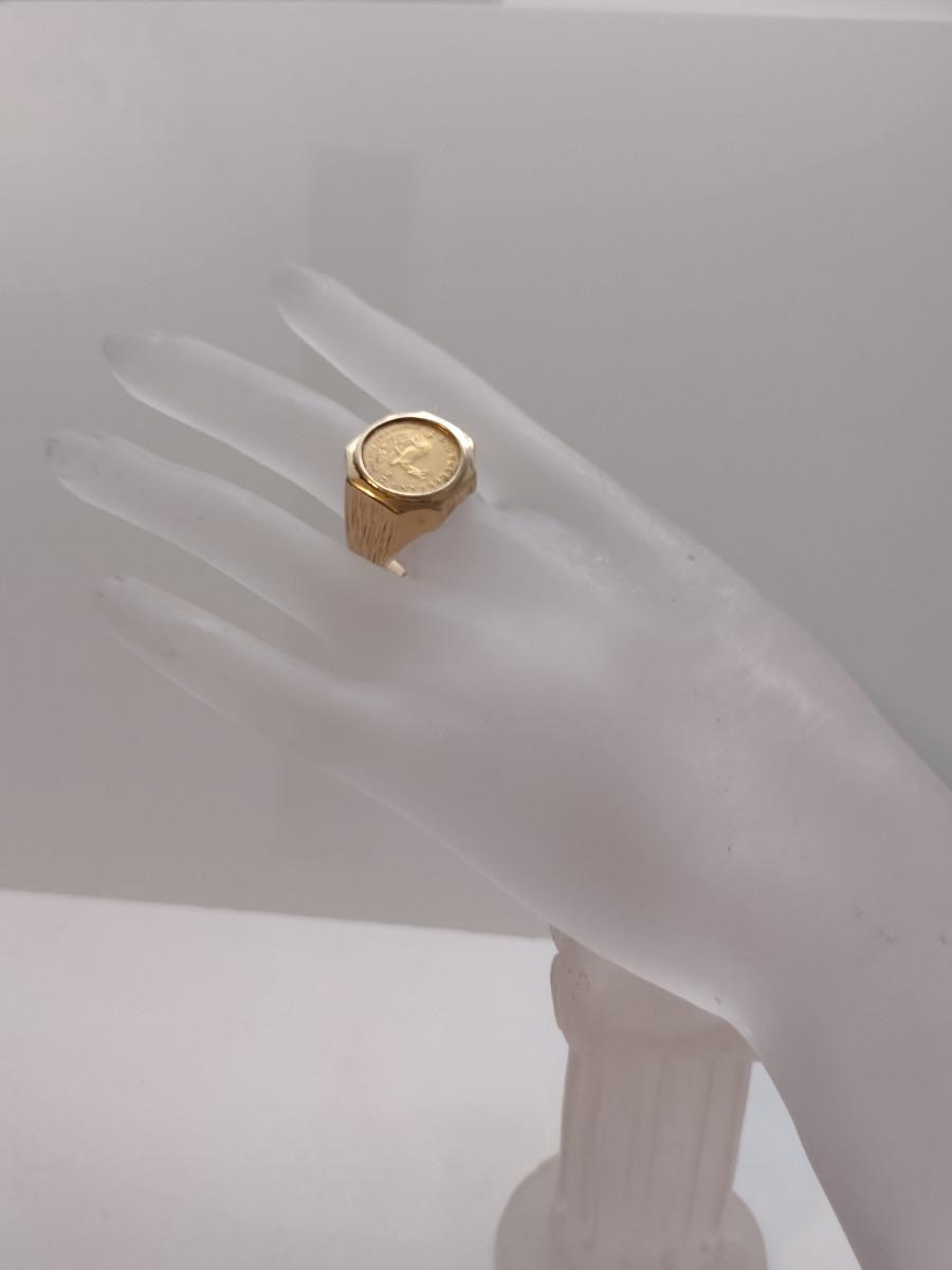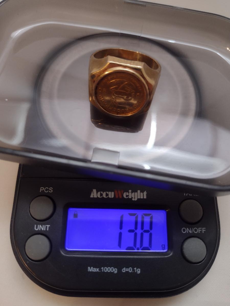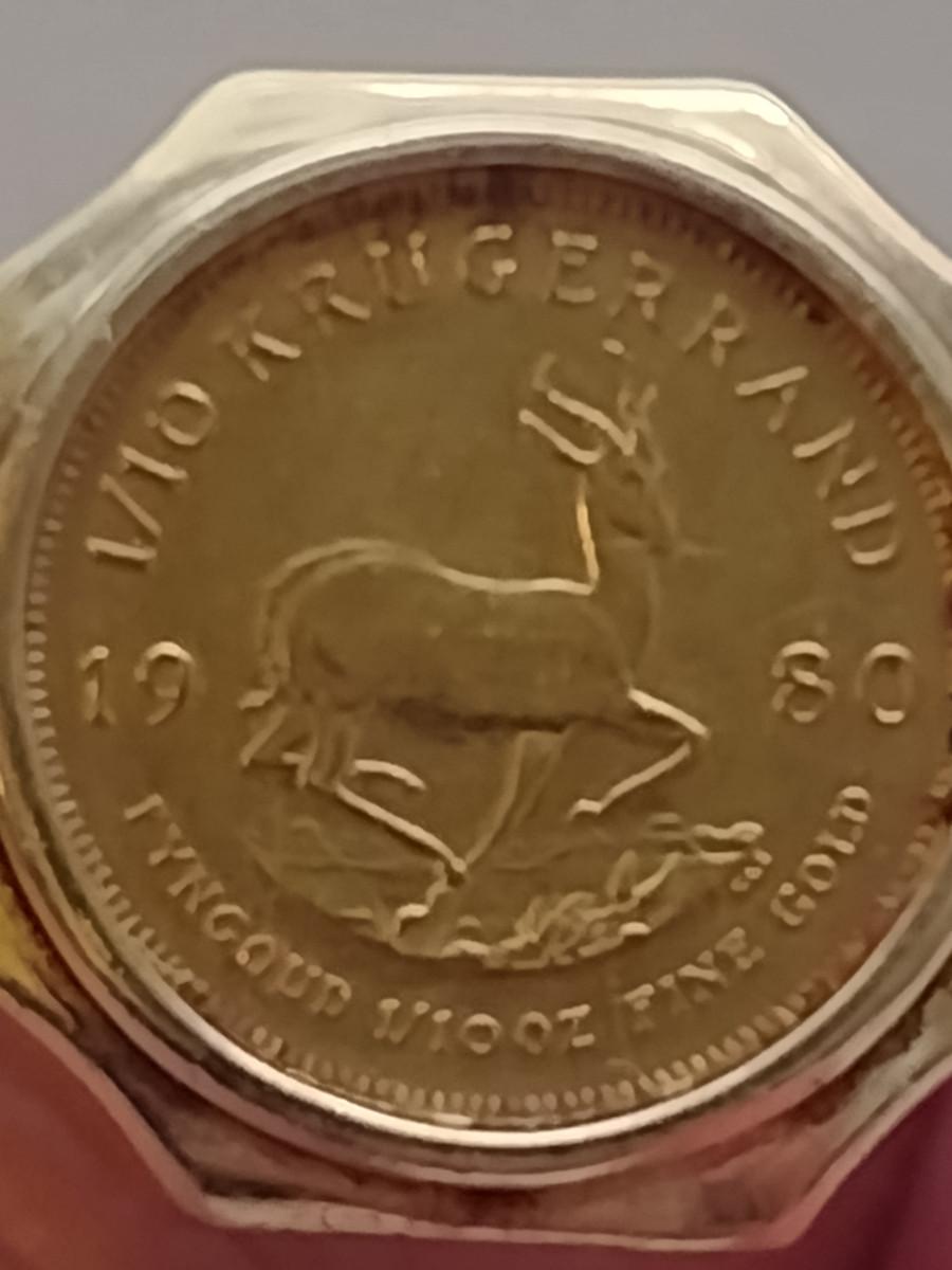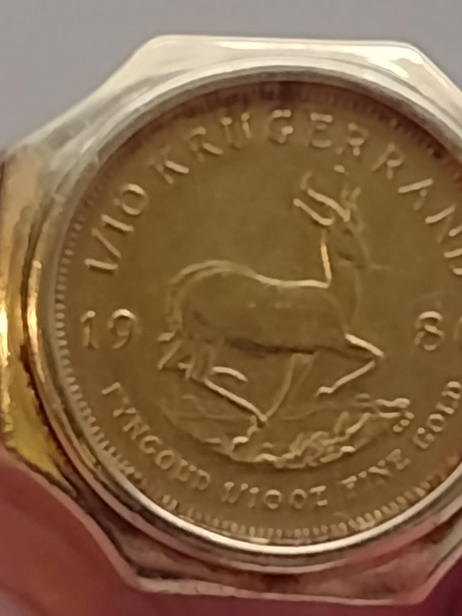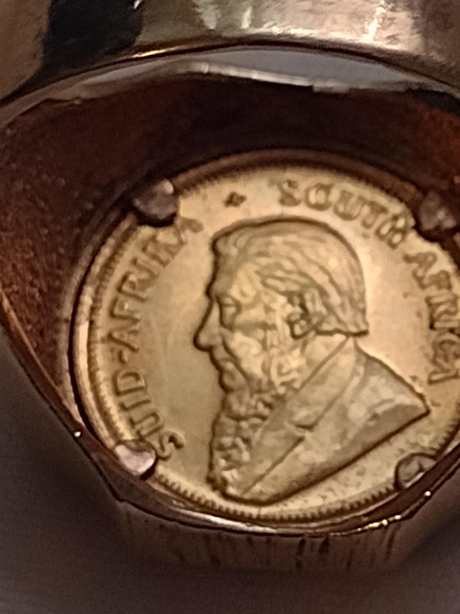 Men's Gold Ring with Mounted 1/10 Krugerand Coin- Size 12 1/2- Total Weight Approx 13.8 Grams (#2)
