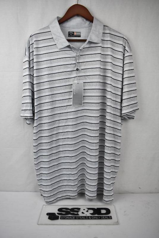 Men's Golf Shirt Size XXL, Black Gray White Stripes by Callaway - New