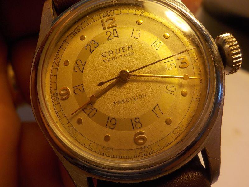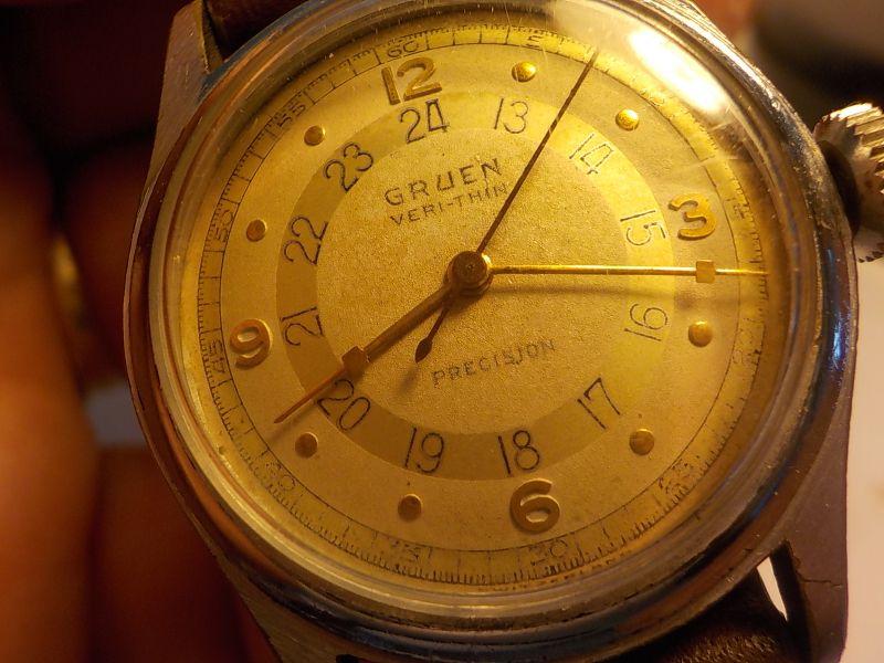 "Mens Gruen veri-thin precison pilot wrist watch".