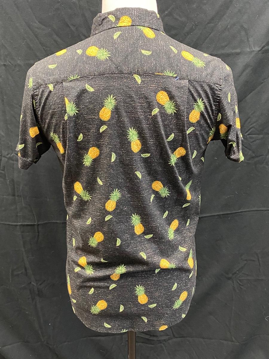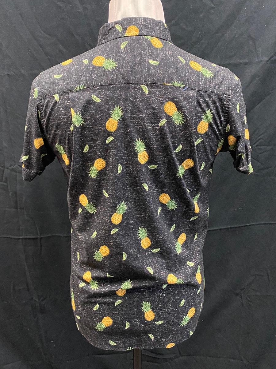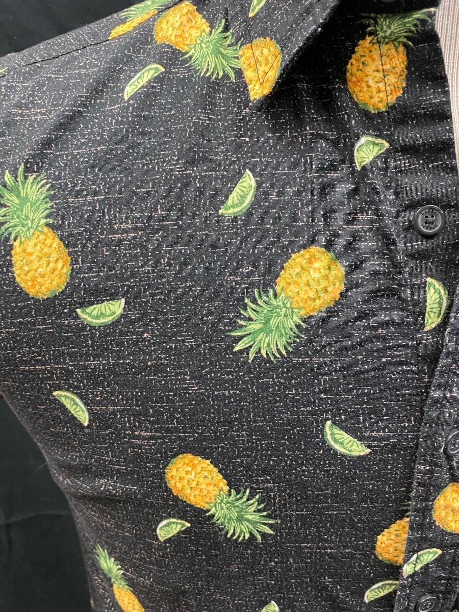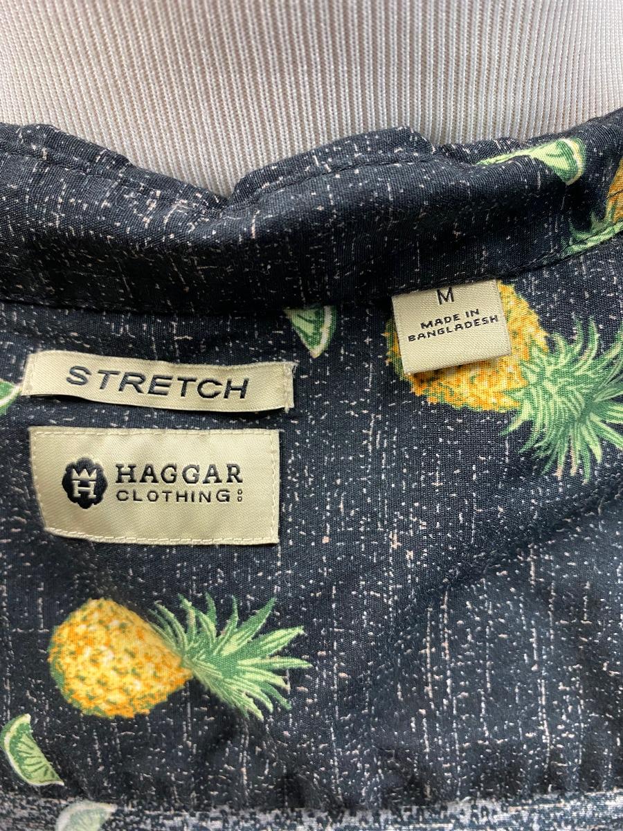 Men's Haggar Clothing Stretch Fit Black Button Front Pineapple Shirt Medium