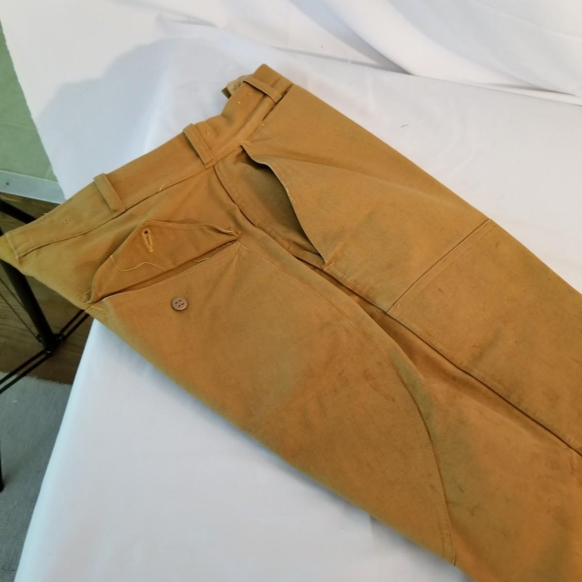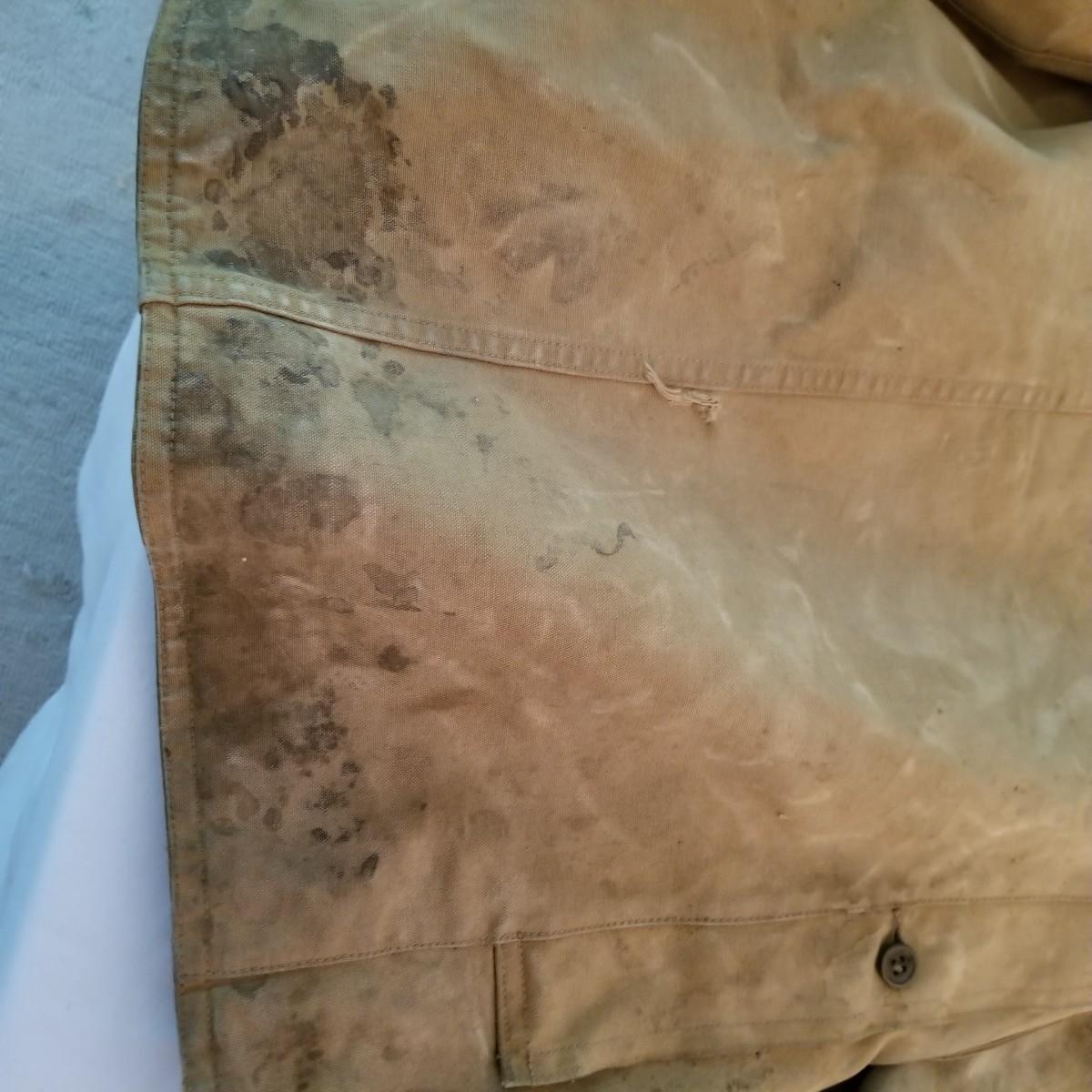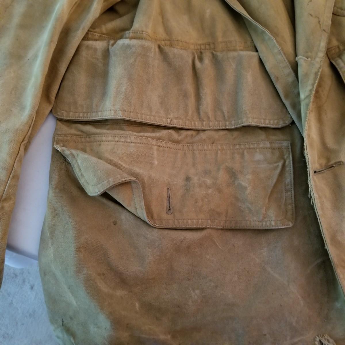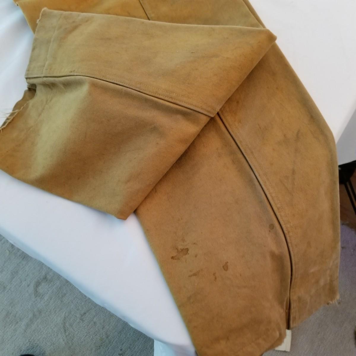 Three piece set of heavy canvas clothing for hunting. Jacket, pants, and vest are field tan color. Vest and jacket have rear game pockets. Sizes approximately large - XL. Items in fair condition, see photos for detail.  Shipping available.