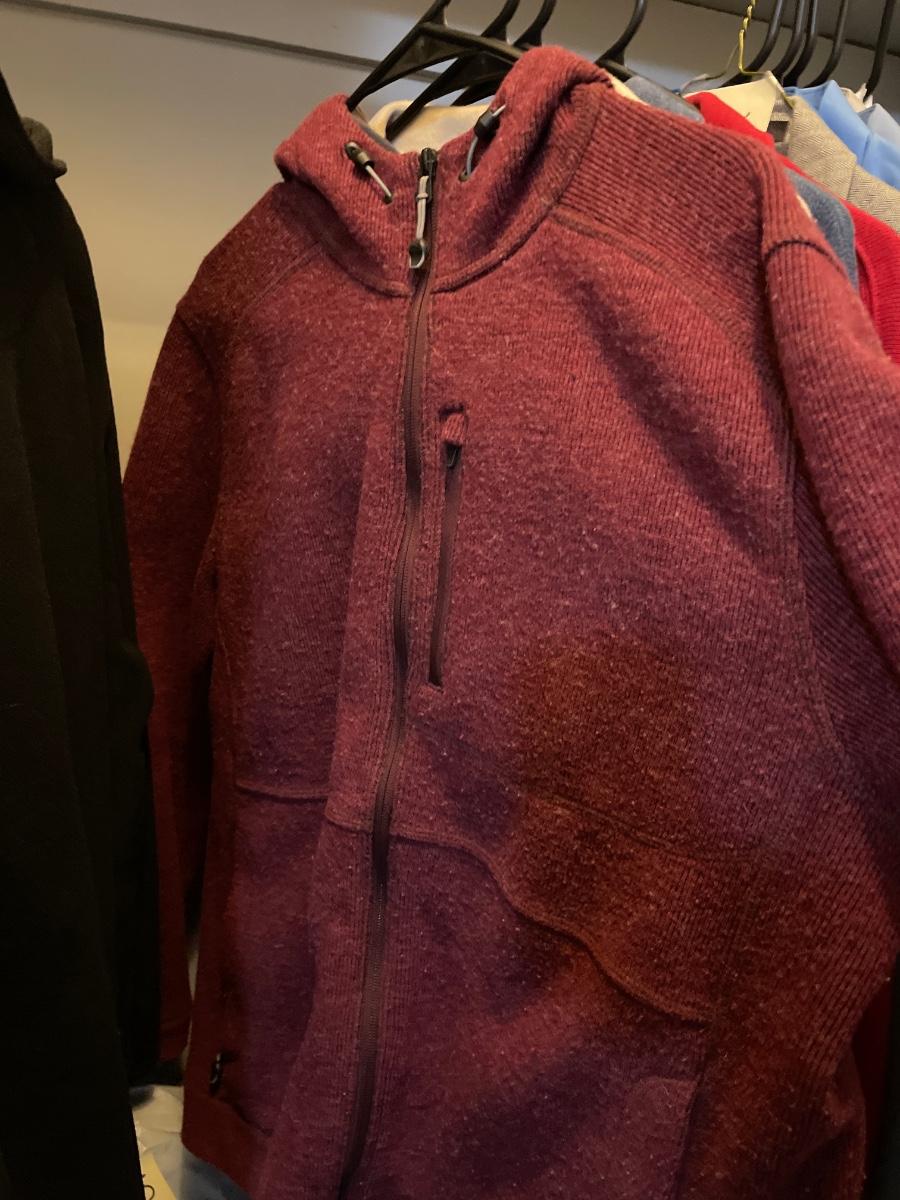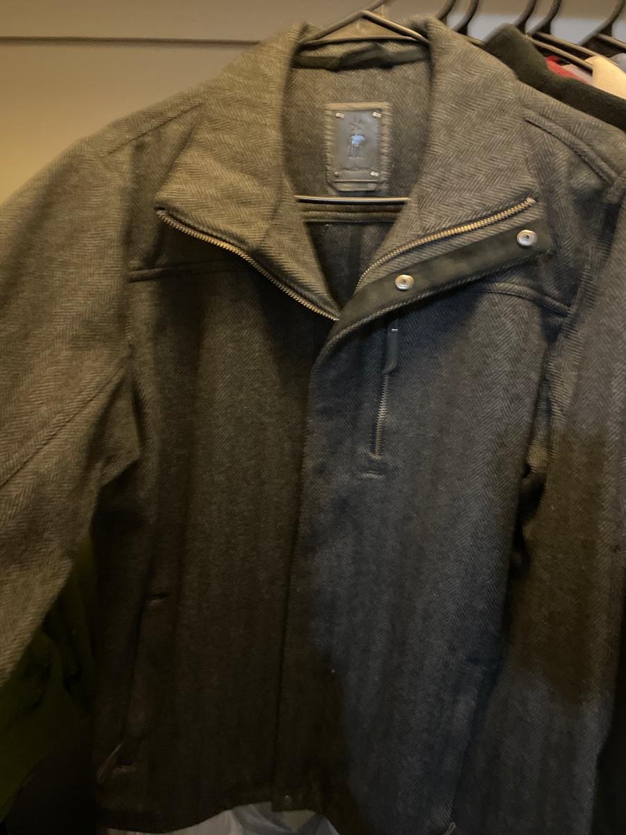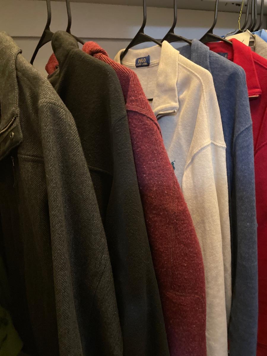 Men’s wool gray jacket, size medium. Assorted zip sweaters some pole. Size large