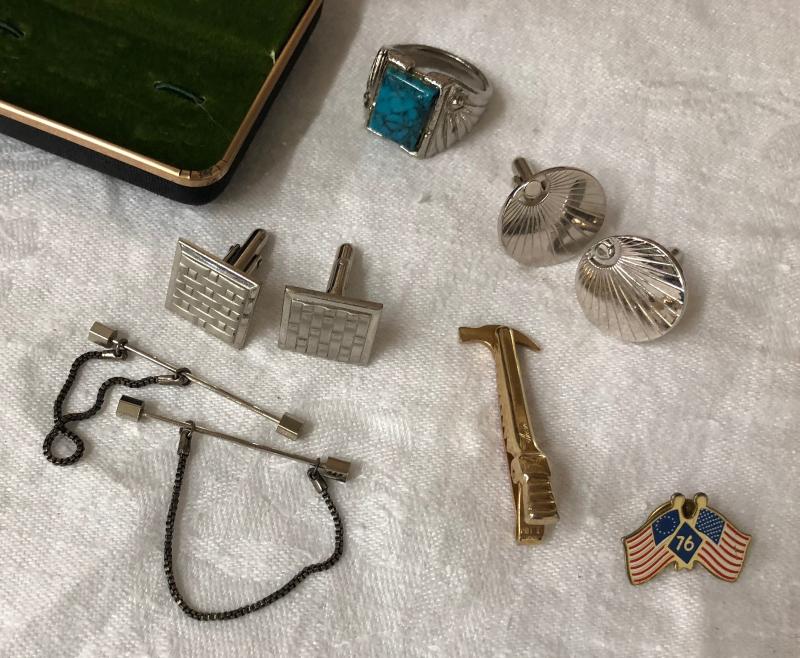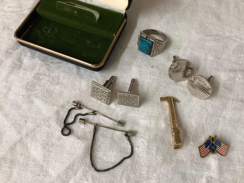 Here is a lot of vintage men's jewelry...cufflinks..ring..tie tacks...