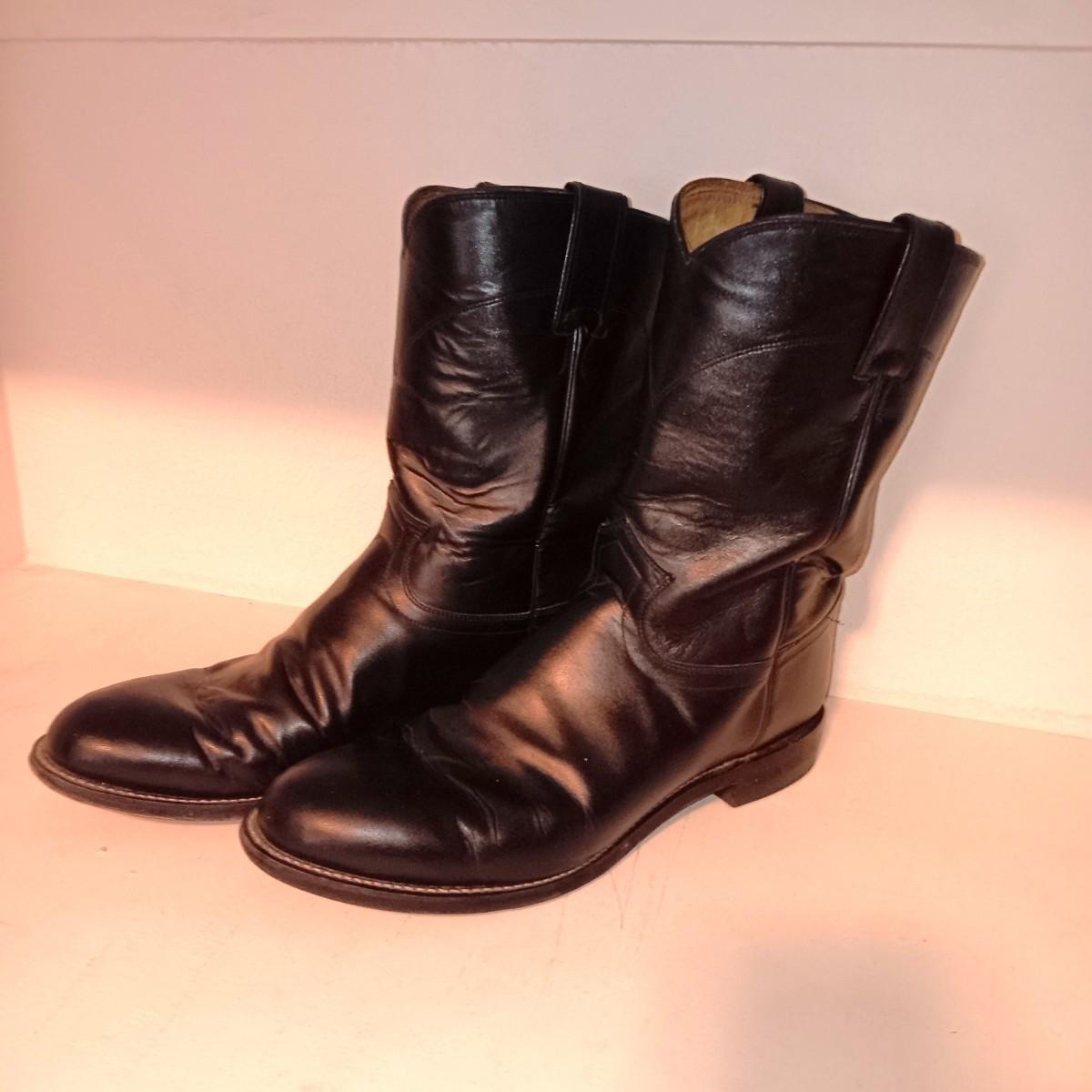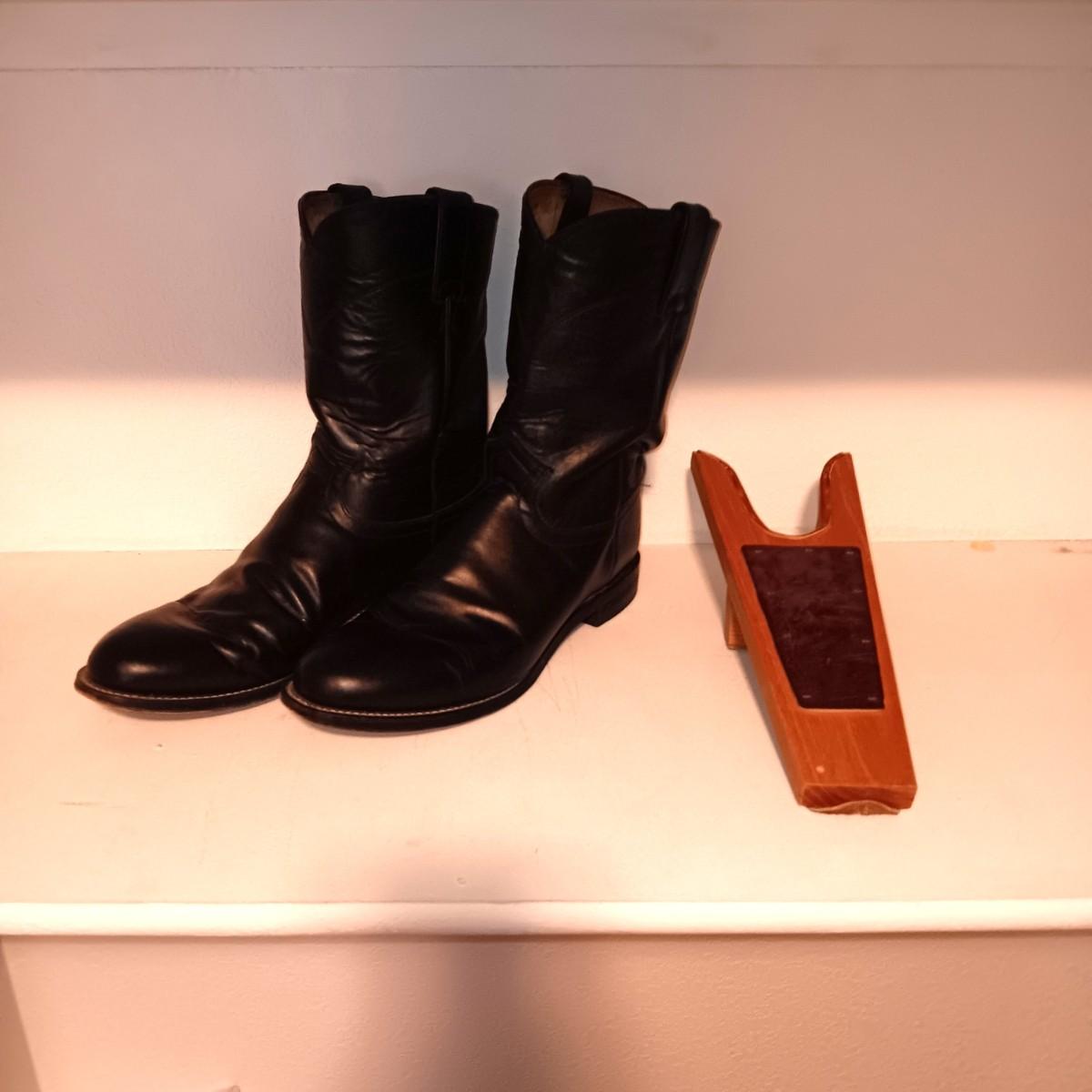MEN'S JUSTIN LEATHER BOOTS SIZE 10EE & A BOOT HORN