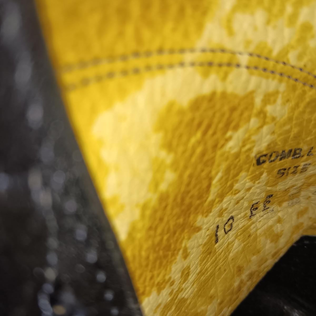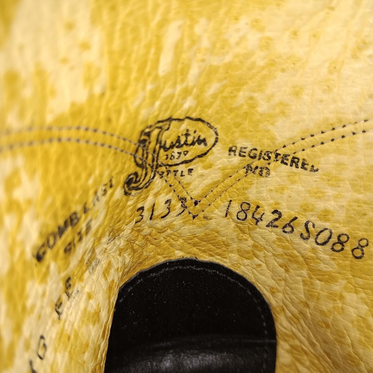 MEN'S JUSTIN LEATHER BOOTS (SIZE 10FF) AND BOOT HORN