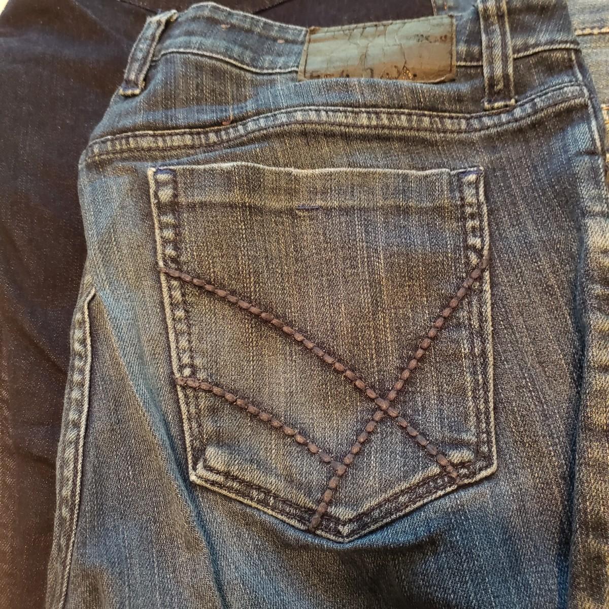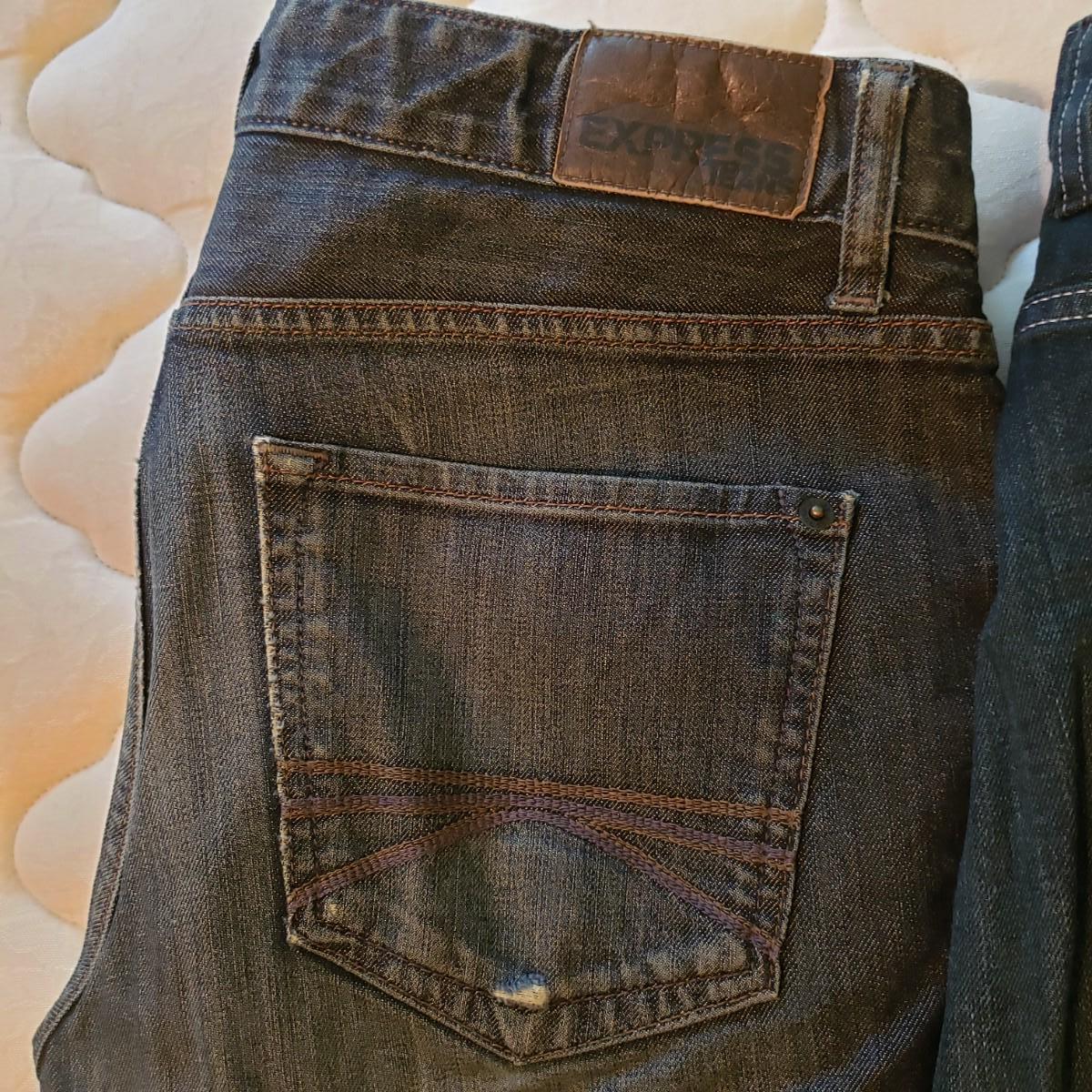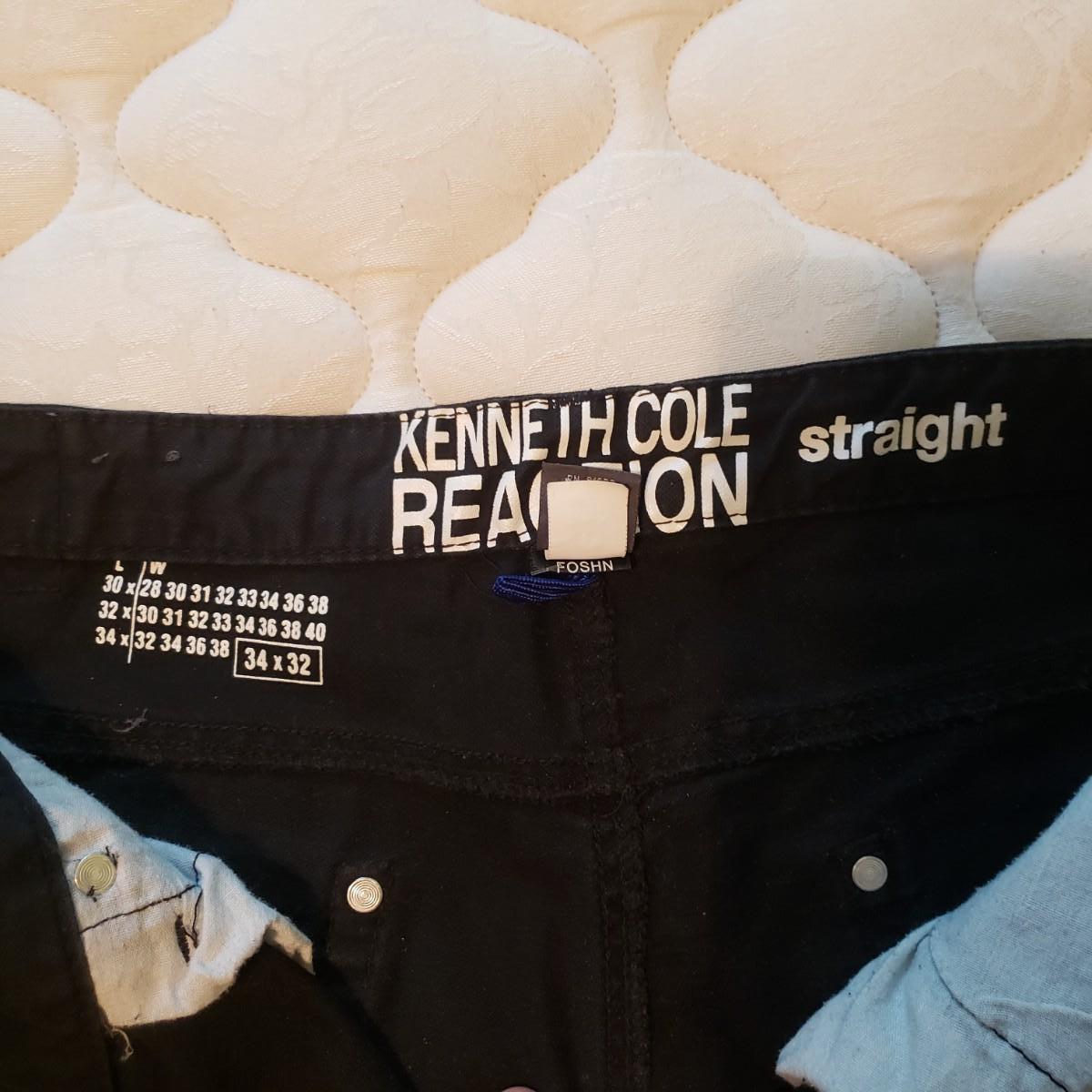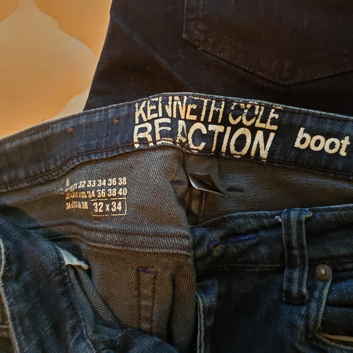 This lot contains eight pairs of men's jeans and and one pair of black corduroy pants. Sizes are 34x32 or 33x32, see pictures for details. There are four pairs of Kenneth Cole Reaction, one pair of new Pilot, by Ralph Lauren, one pair of Express Jeans, Berle black corduroy pants (the pictures don't show the black, but they are), and two new 7 For All Mankind jeans.