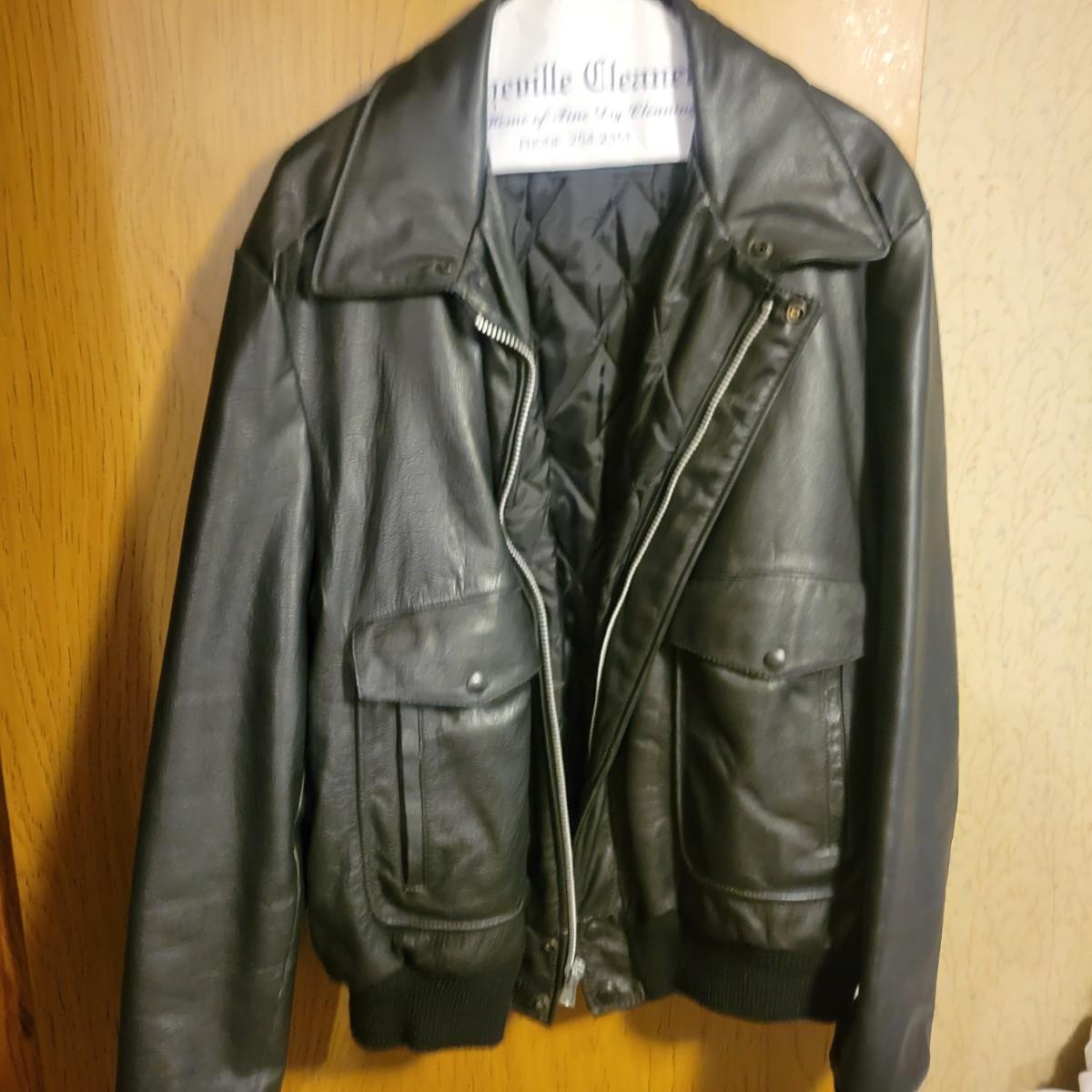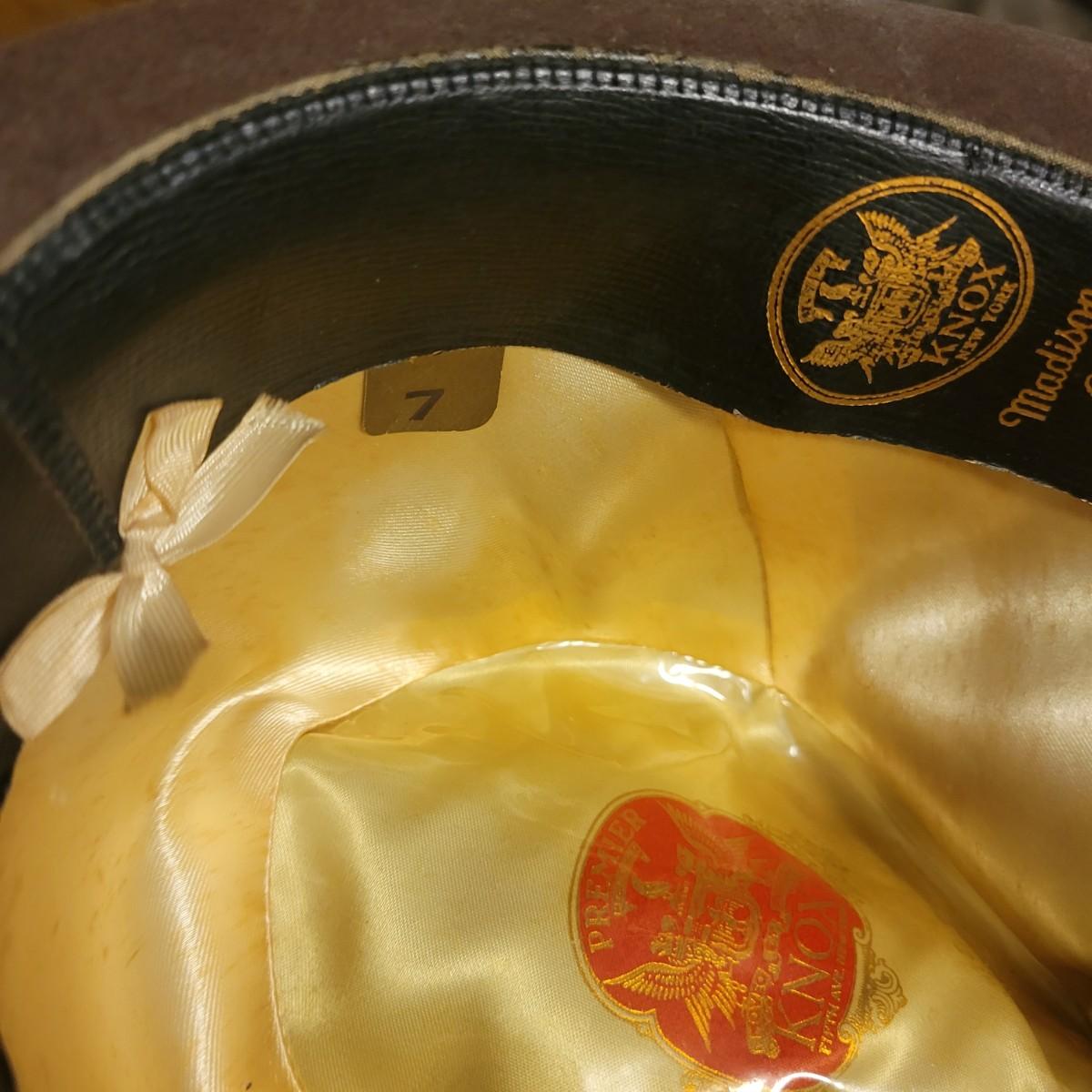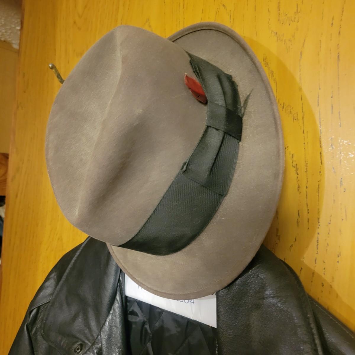 A man's felt dress hat made by Knox and is in good condition with some minor wear from use. Hat is a sz7. Also included is a men's leather jacket manufactured by Oakton Limited in good condition with some minor wear from use. Jacket is XL Tall. Shipping available