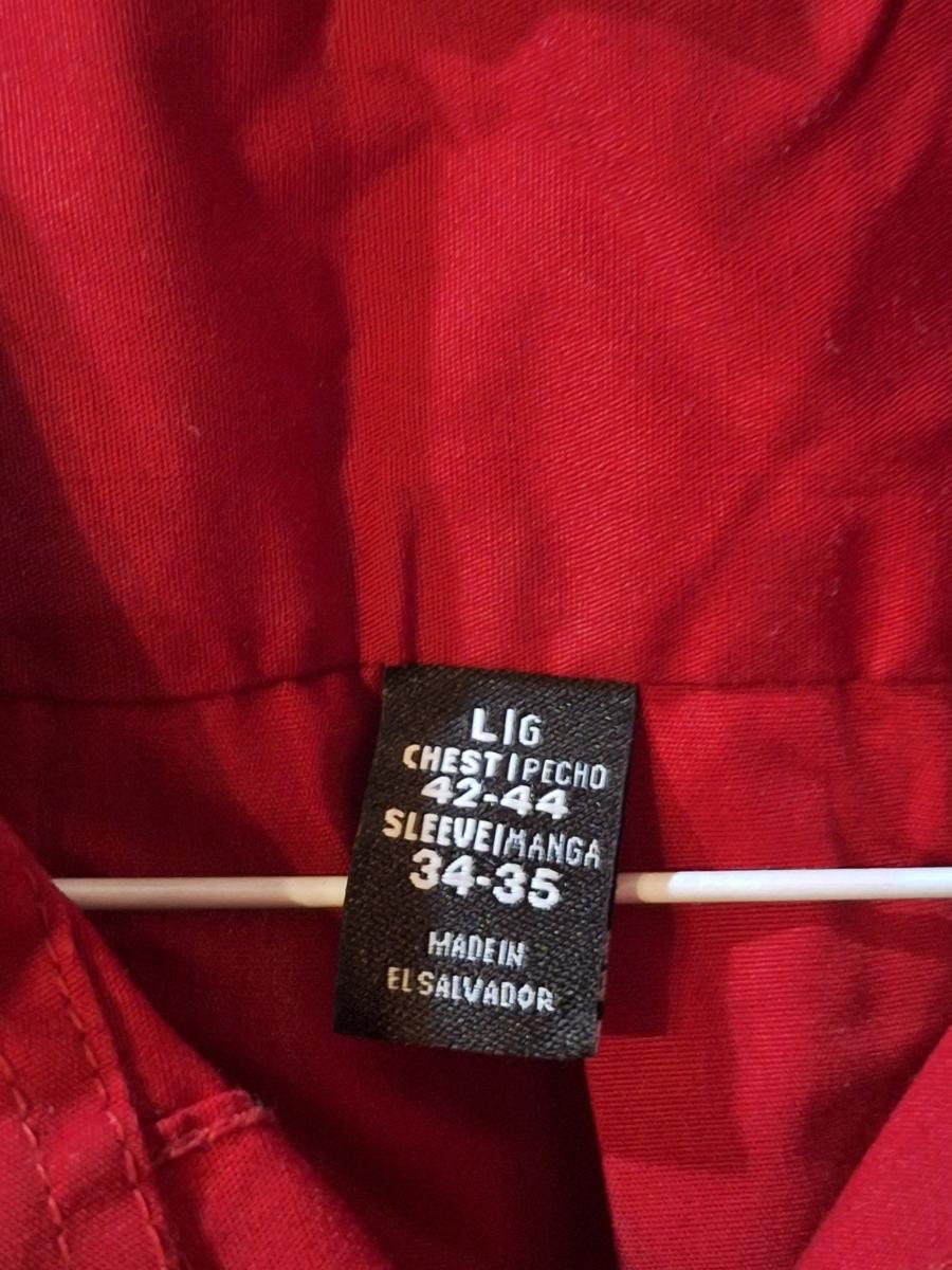 Men's large long sleeve red shirt, chest 44, sleeve length 34-35