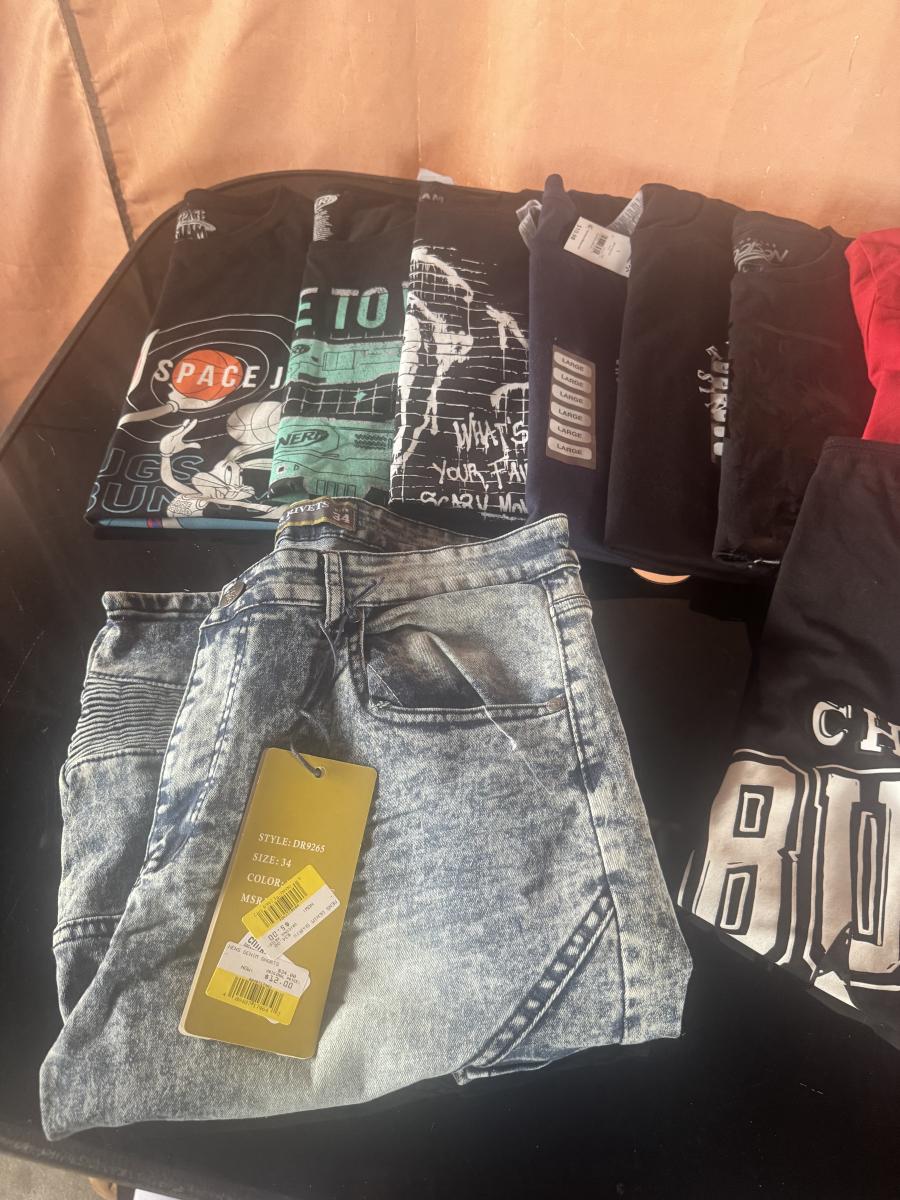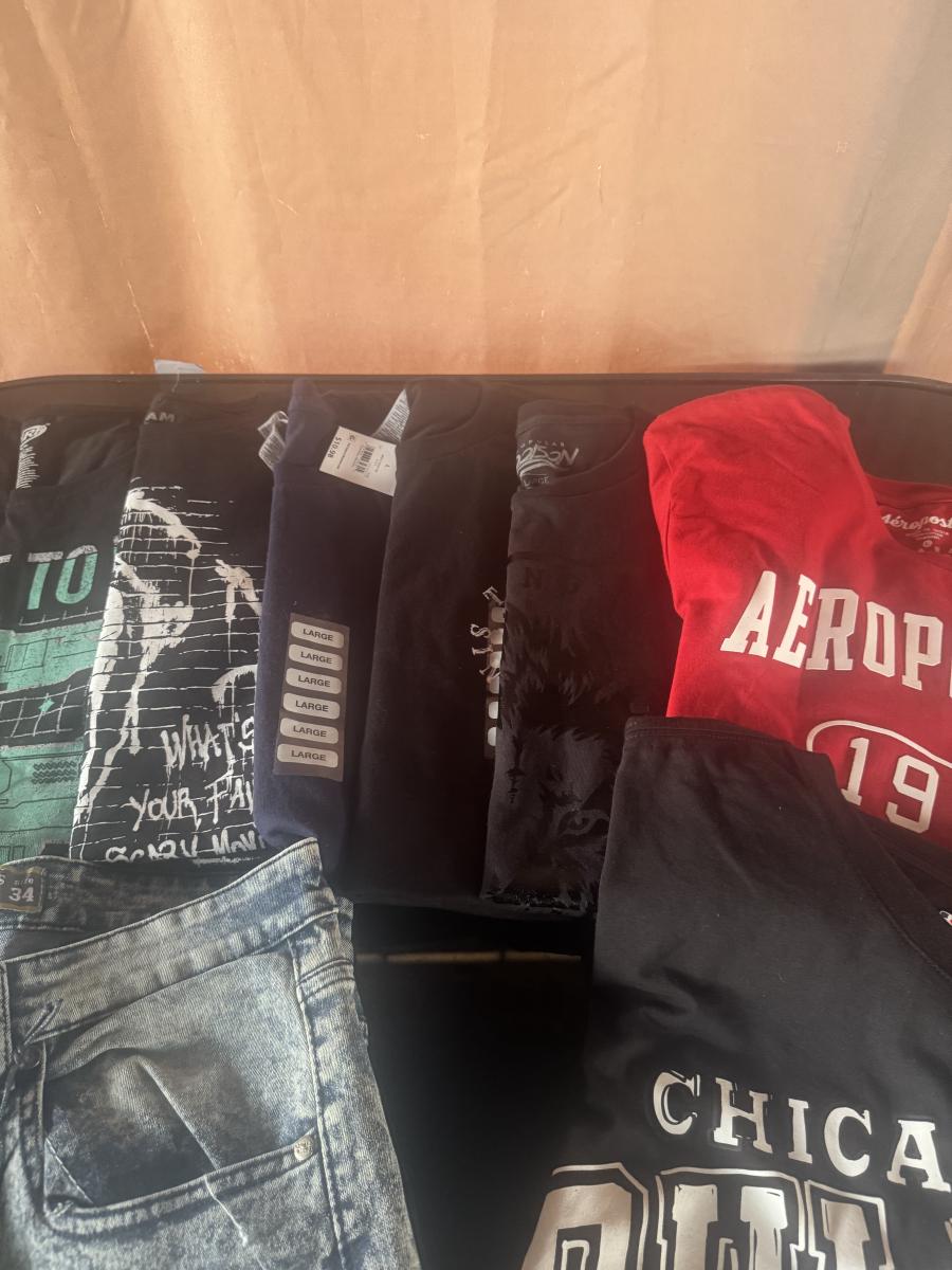 MEN'S LARGE SHIRTS AND 34" SHORTS