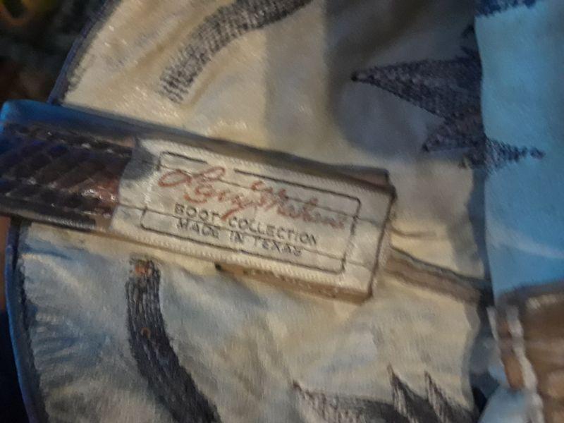 MENS LARRY MAHAN SIZE 10 BLACK SNAKE SKIN BOOTS WITH LEATHER SOLES.