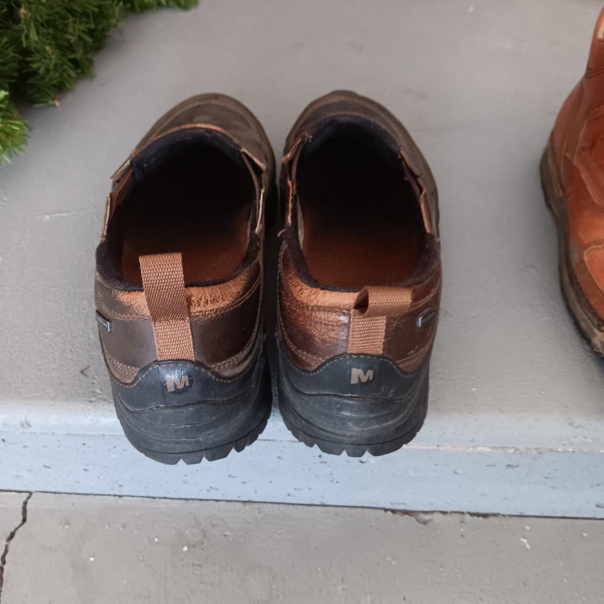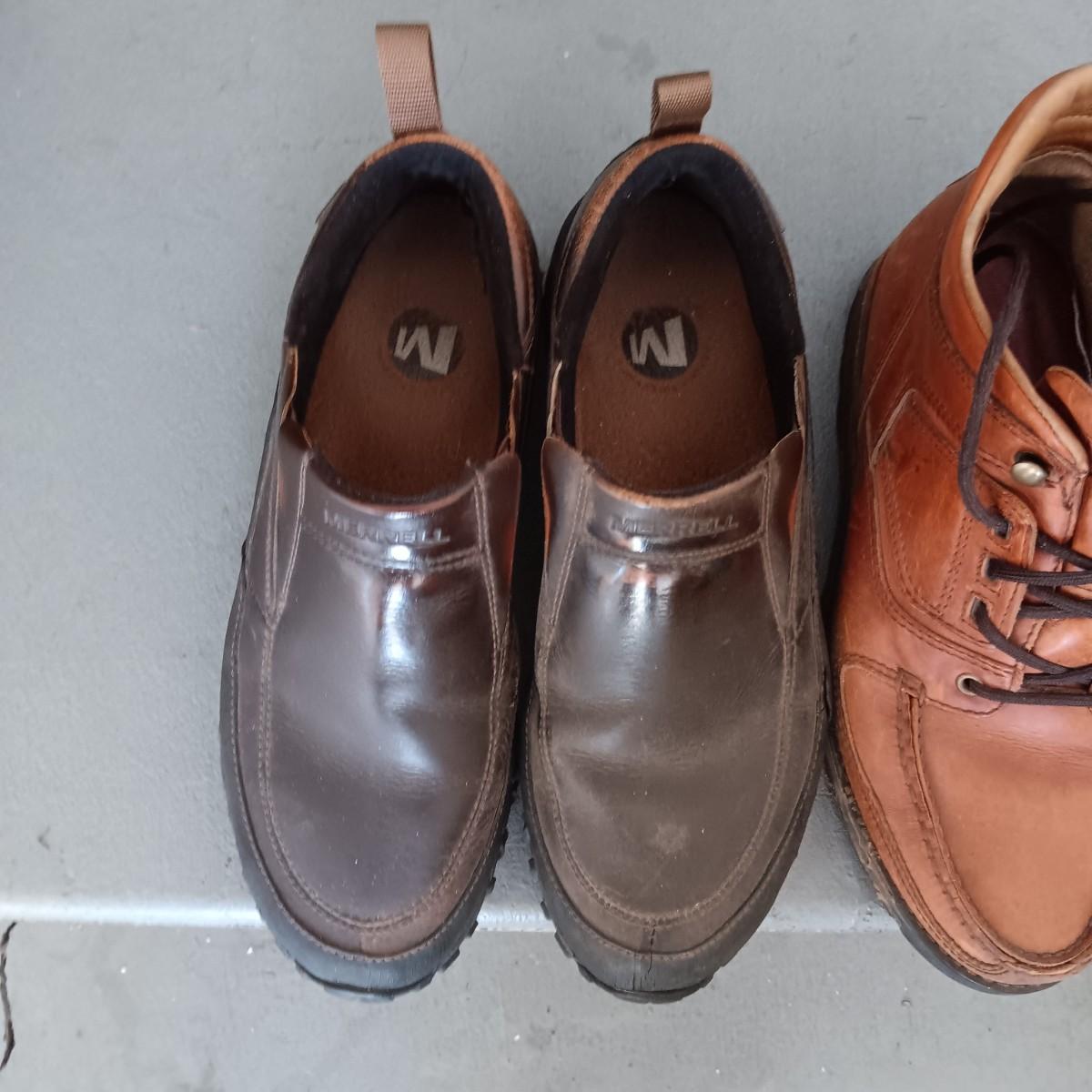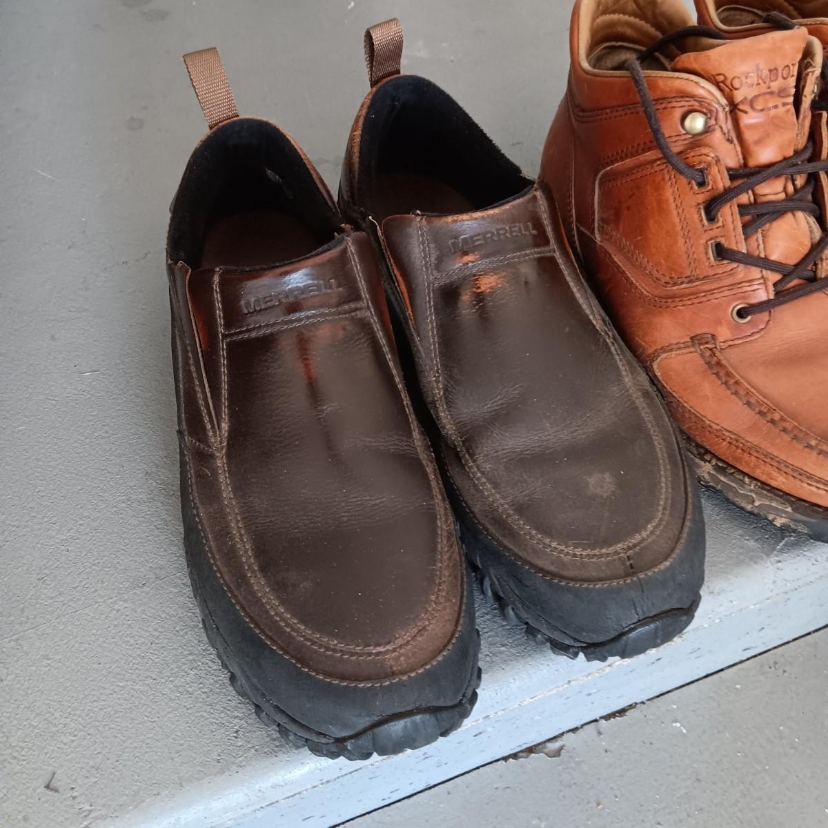 MEN'S LEATHER MERRELL SLIP ON SHOES AND ROCKPORT BOOTS SIZE 10