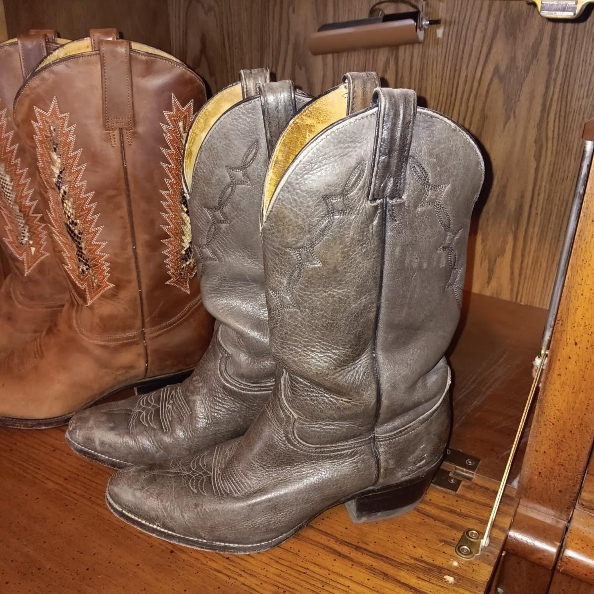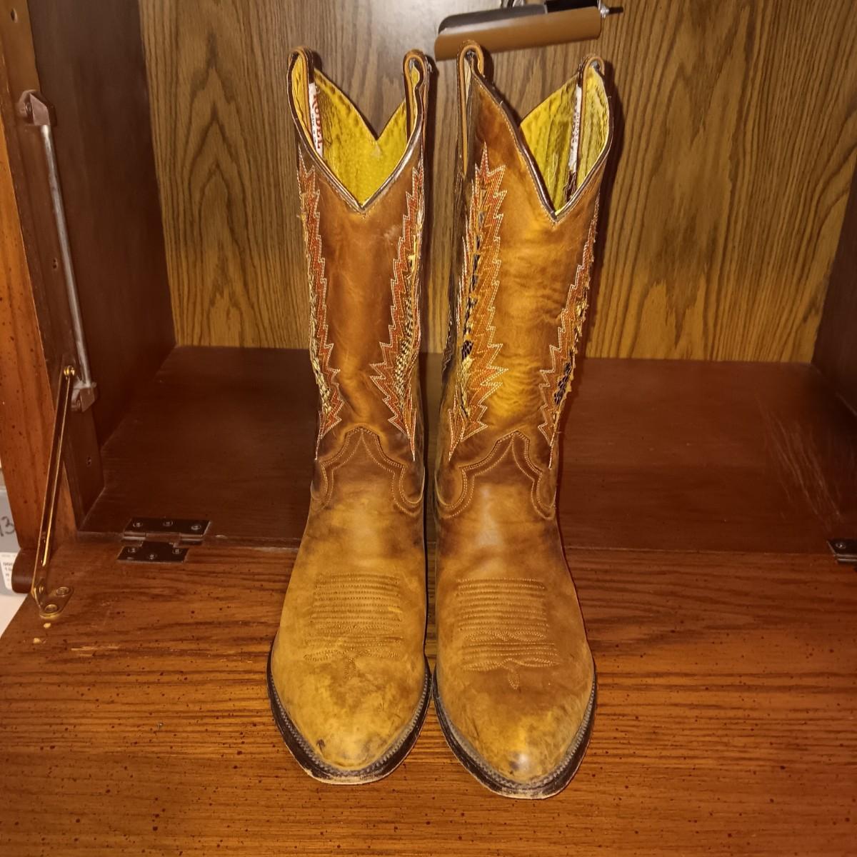 MEN'S LEATHER WESTERN BOOTS WITH SOME WEAR SIZE 10