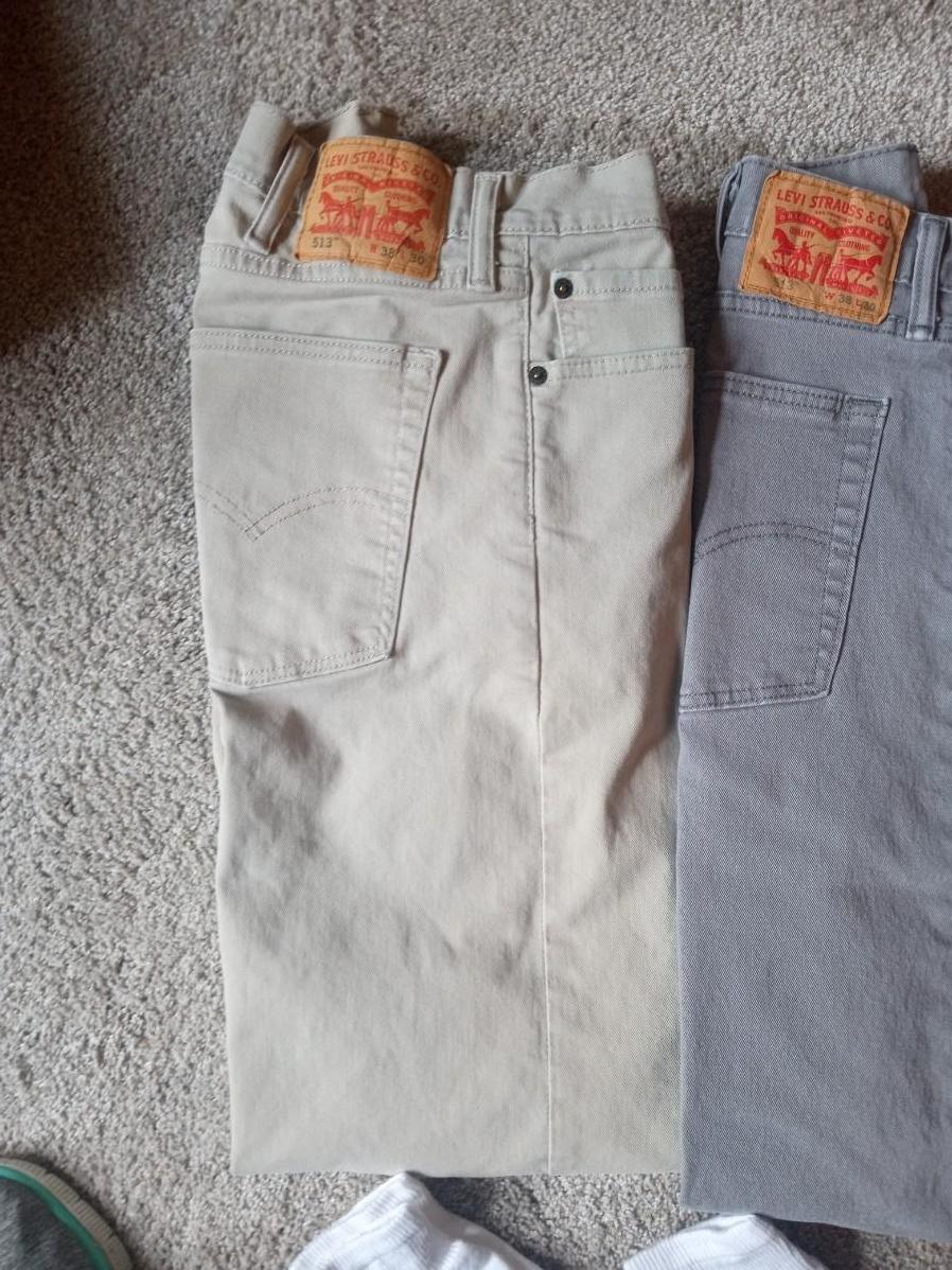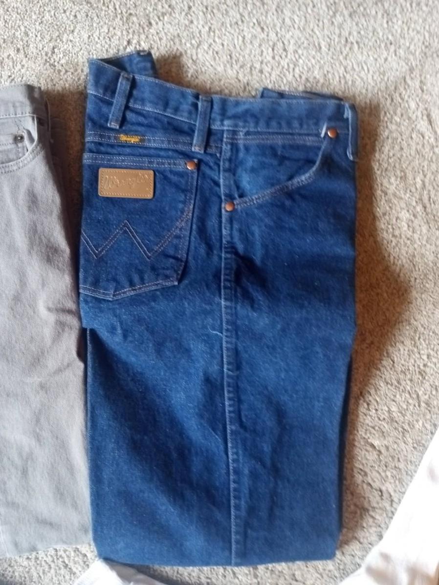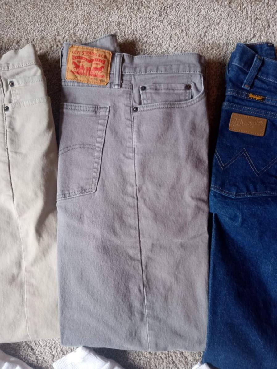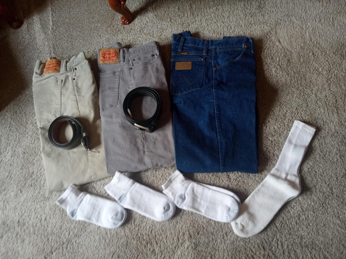 MEN'S LEVIS AND WRANGLER JEANS, BELTS AND SOCKS