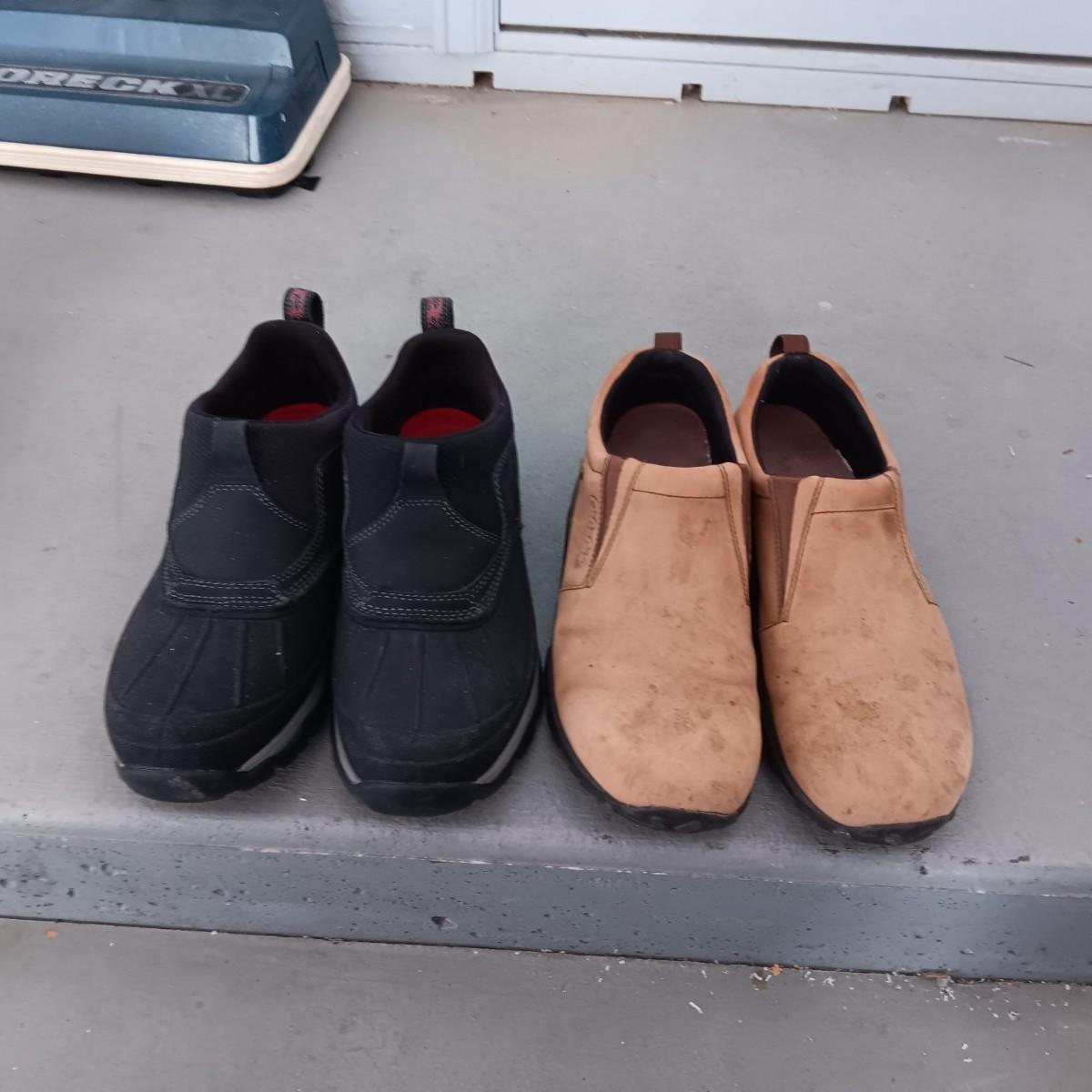 MEN'S LL BEAN AND MERRELL CABELAS LEATHER SLIP ON SHOES SIZE 10