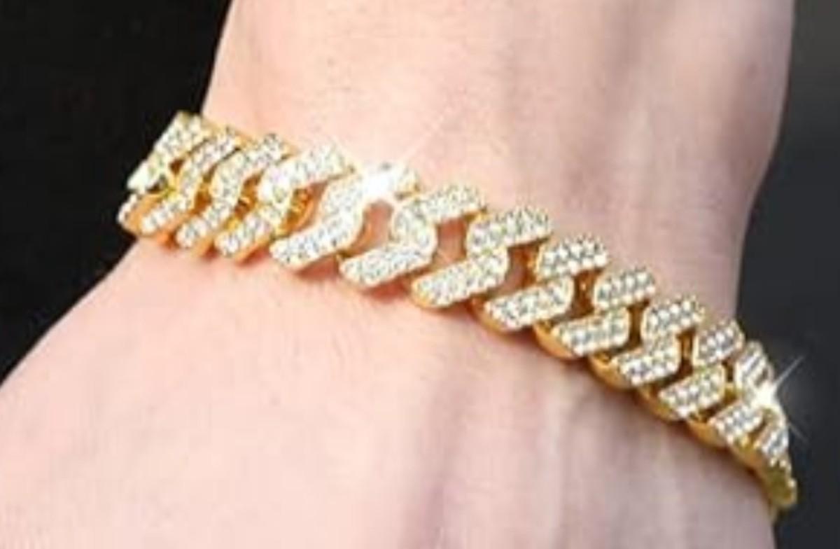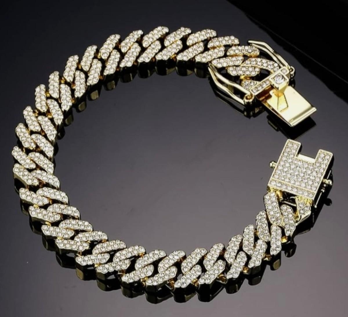 Mens Miami Cuban Link Chain Bracelet 12mm Diamond Prong Cuban Chain 8 inch Length