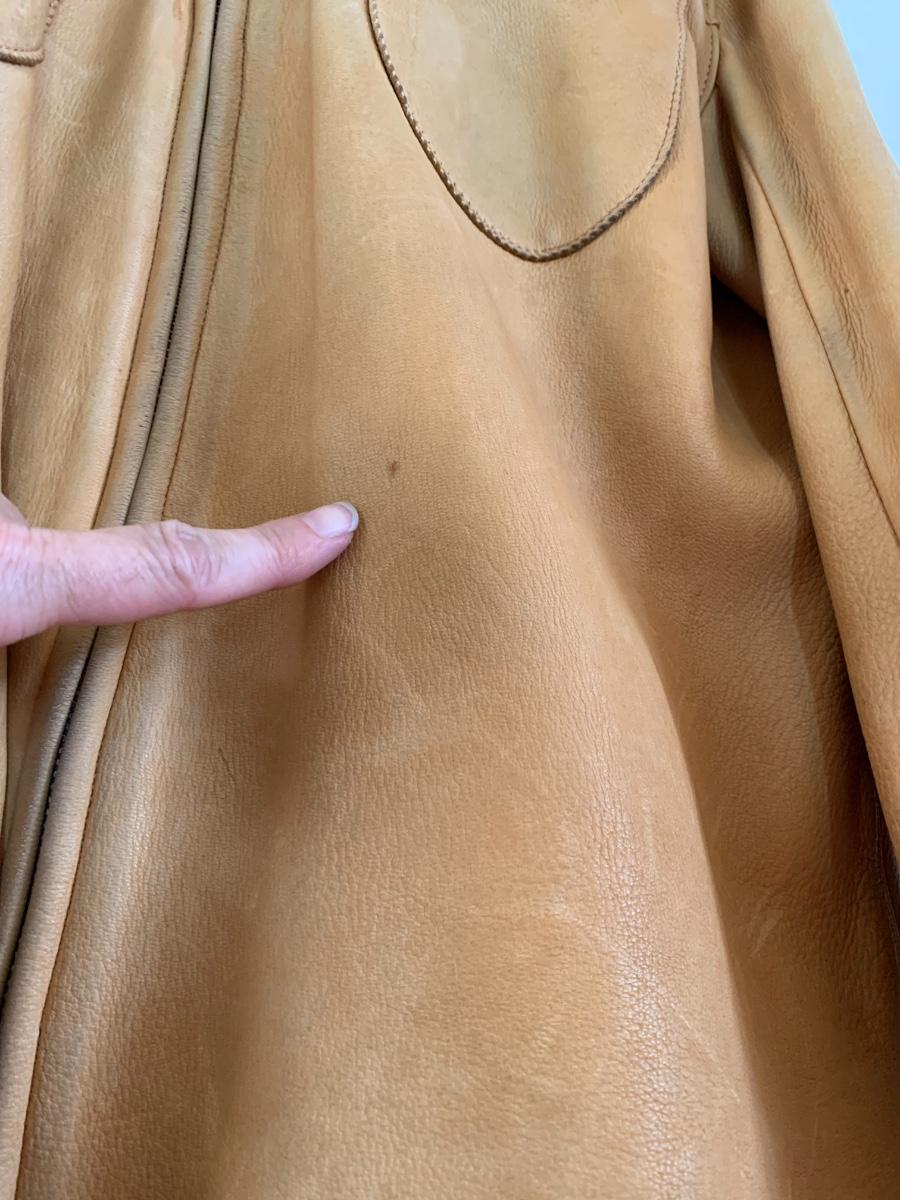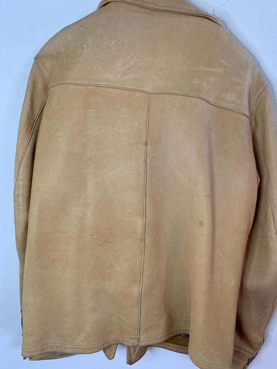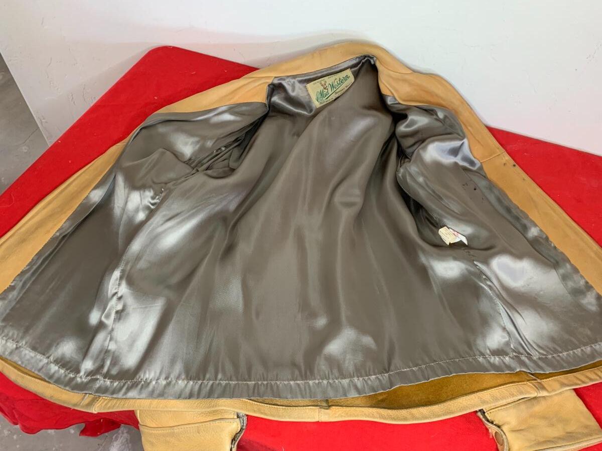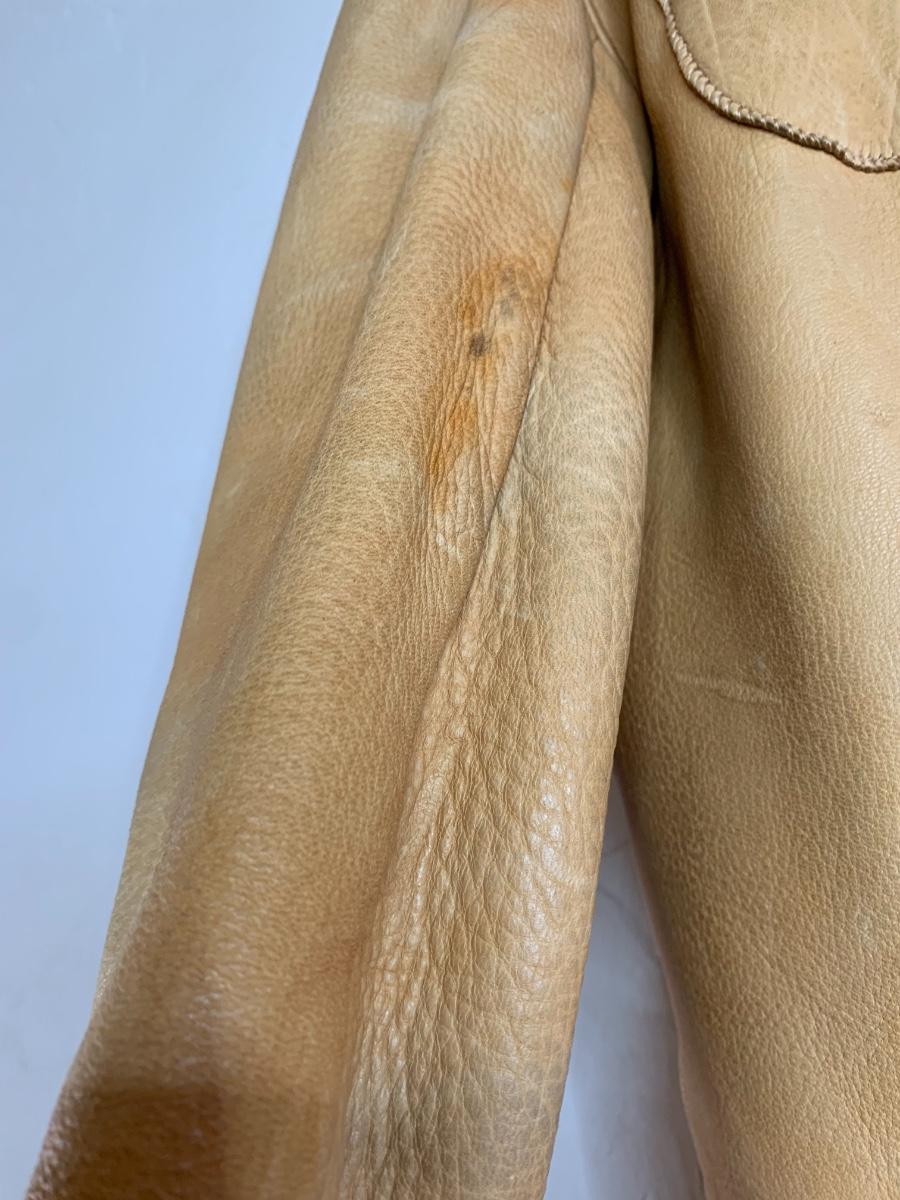 Men's Midwestern Sports Togs Coat from Berlin, Wisconsin. Size 40. Genuine Deer Skin with grey satin lining vintage piece with normal wear but still sturdy and in good condition. With a metal zipper, snap pockets on both breasts and cuffs. Some light stains and scuffs on the back, one small spot on the front and some staining on the wrists. Very soft and supple.