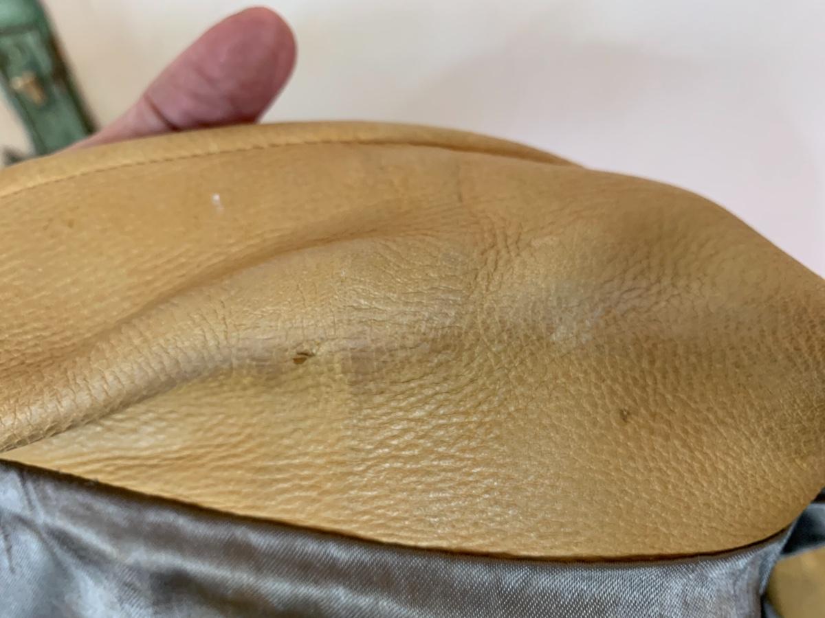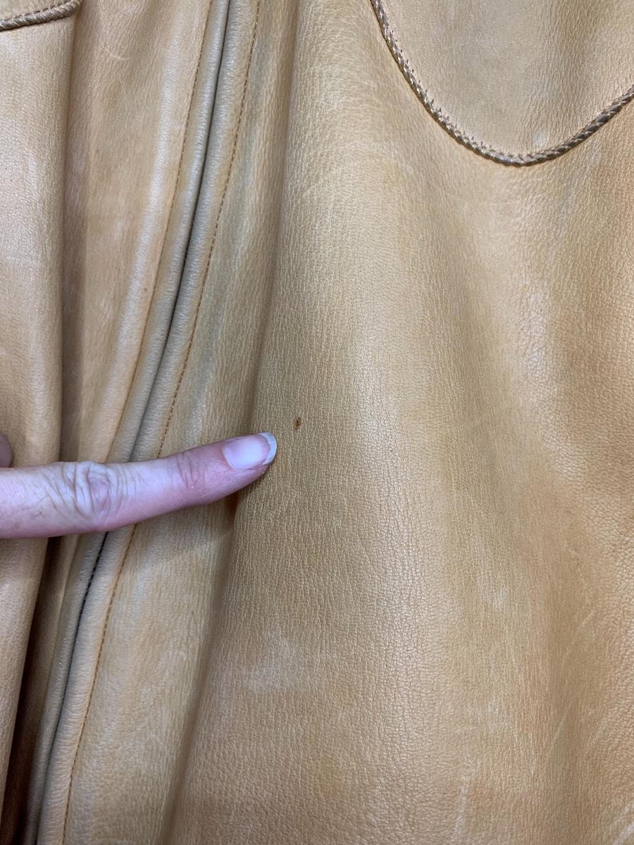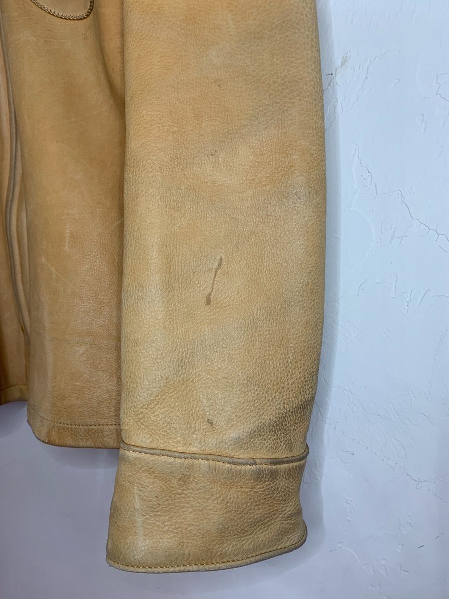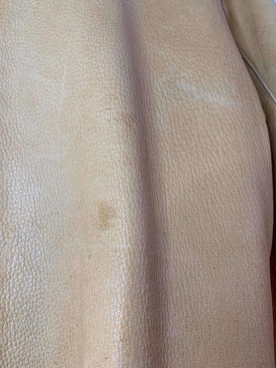 Men's Midwestern Sports Togs Coat from Berlin, Wisconsin. Size 40. Genuine Deer Skin with grey satin lining vintage piece with normal wear but still sturdy and in good condition. With a metal zipper, snap pockets on both breasts and cuffs. Some light stains and scuffs on the back, one small spot on the front and some staining on the wrists. Very soft and supple.