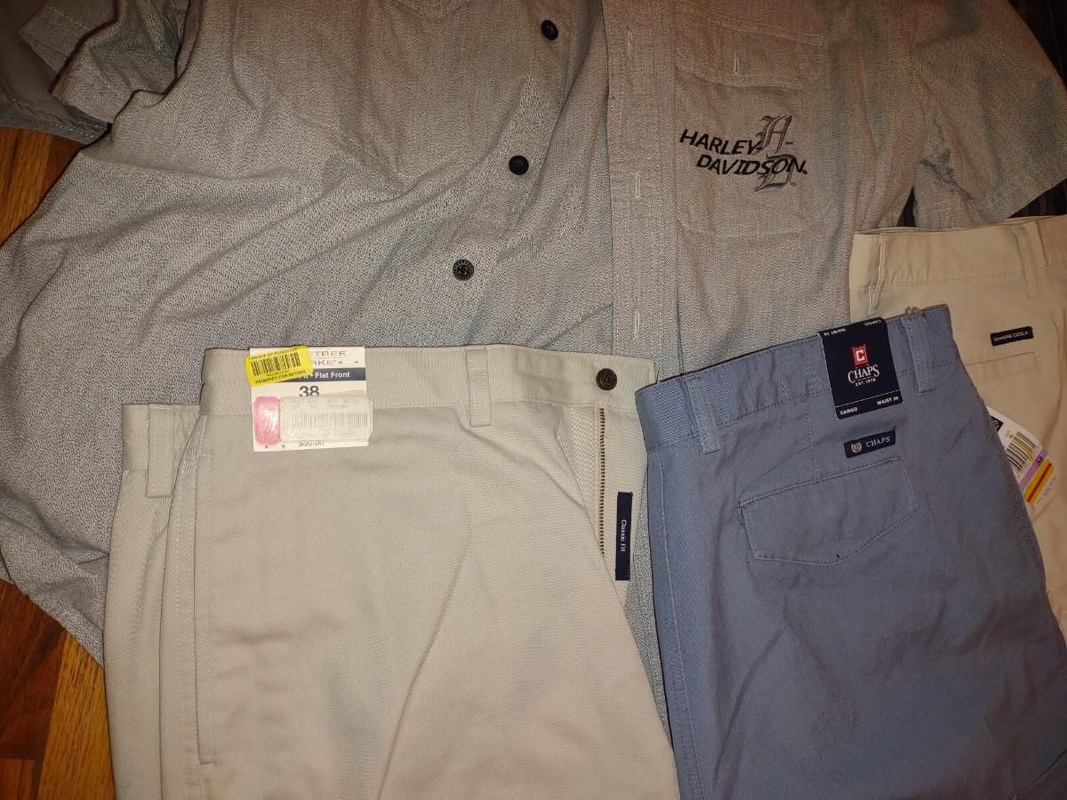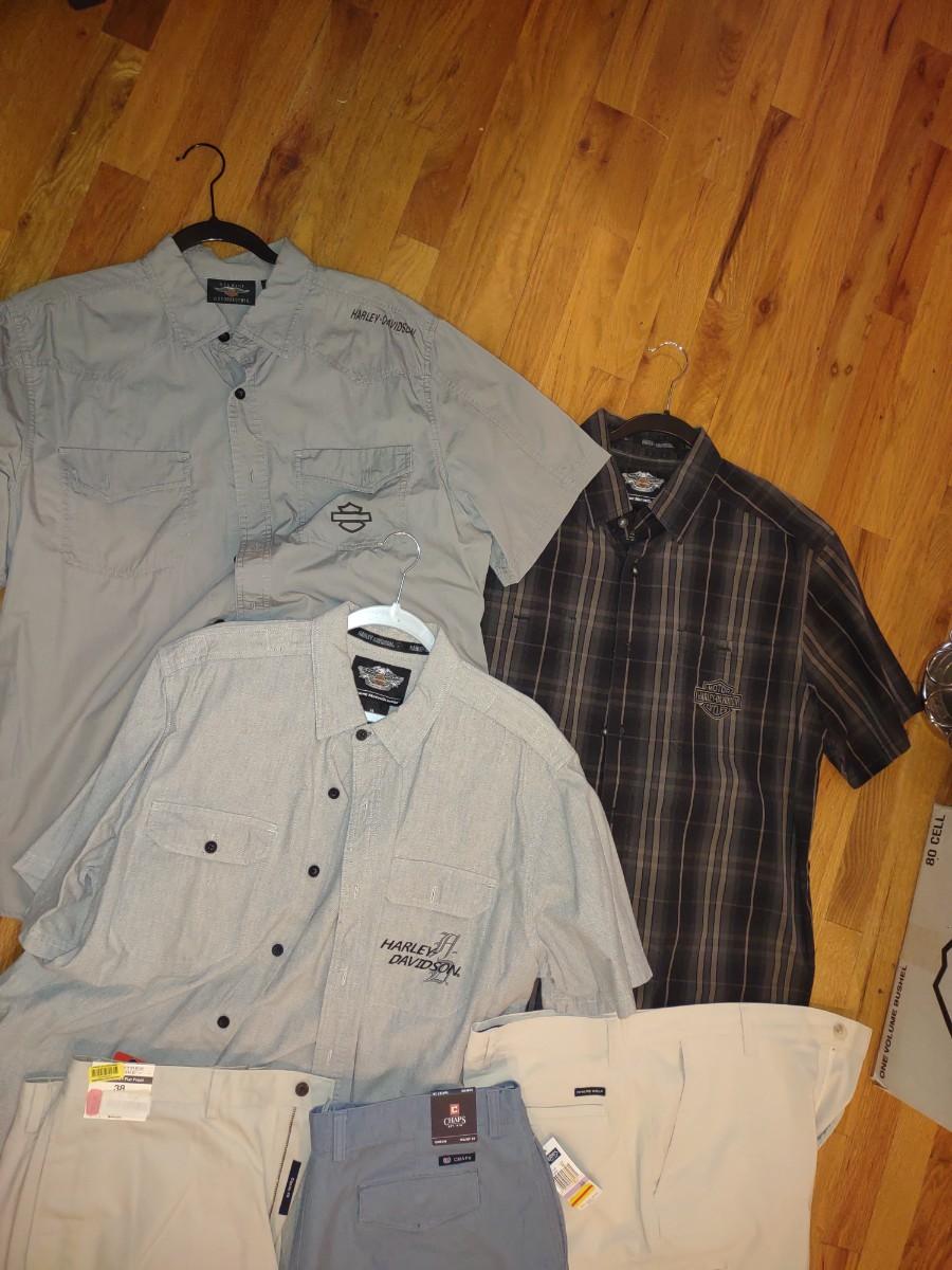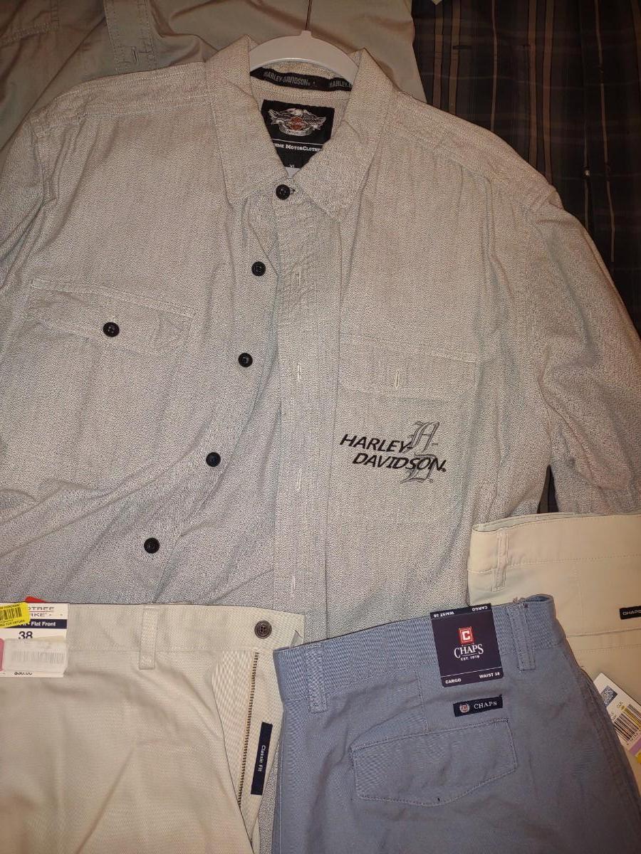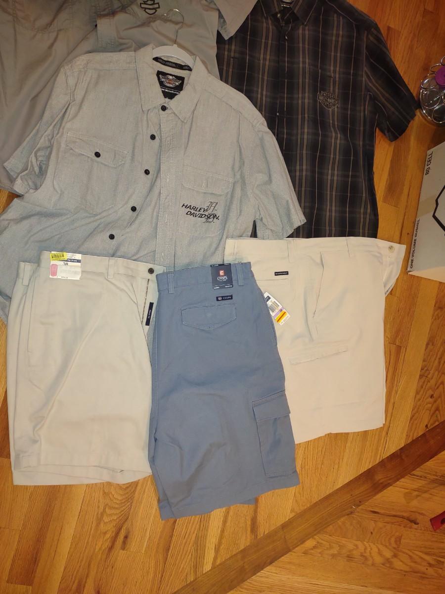 MENS HARLEY DAVIDSON SHIRTS (L & XL) AND SHORTS (38)