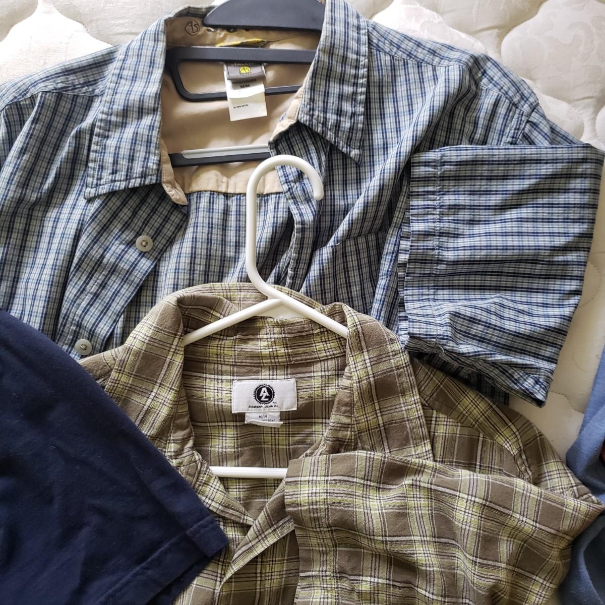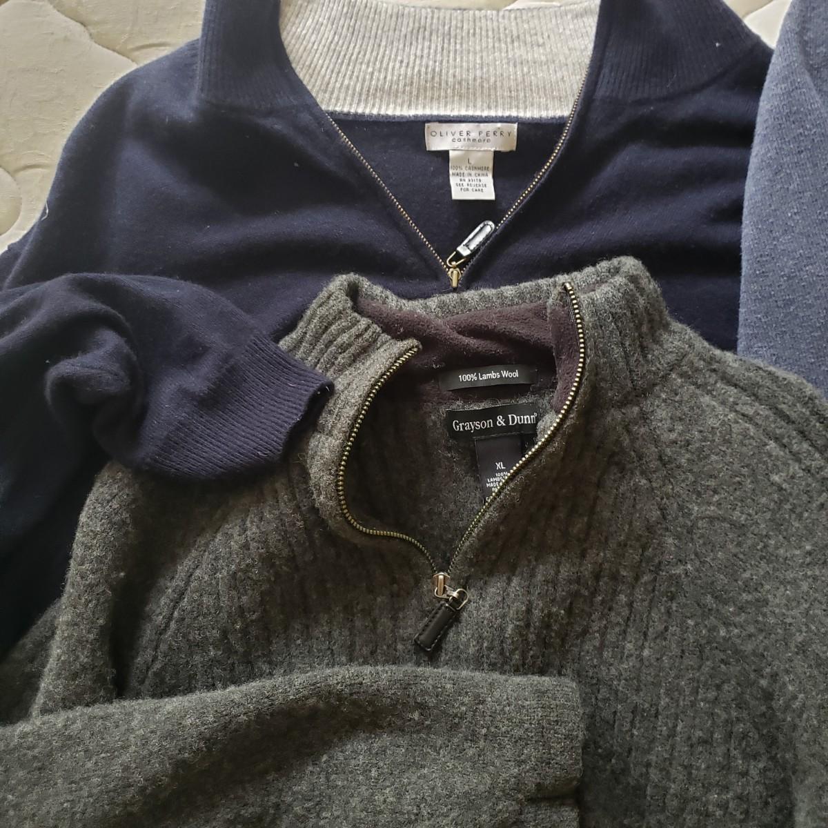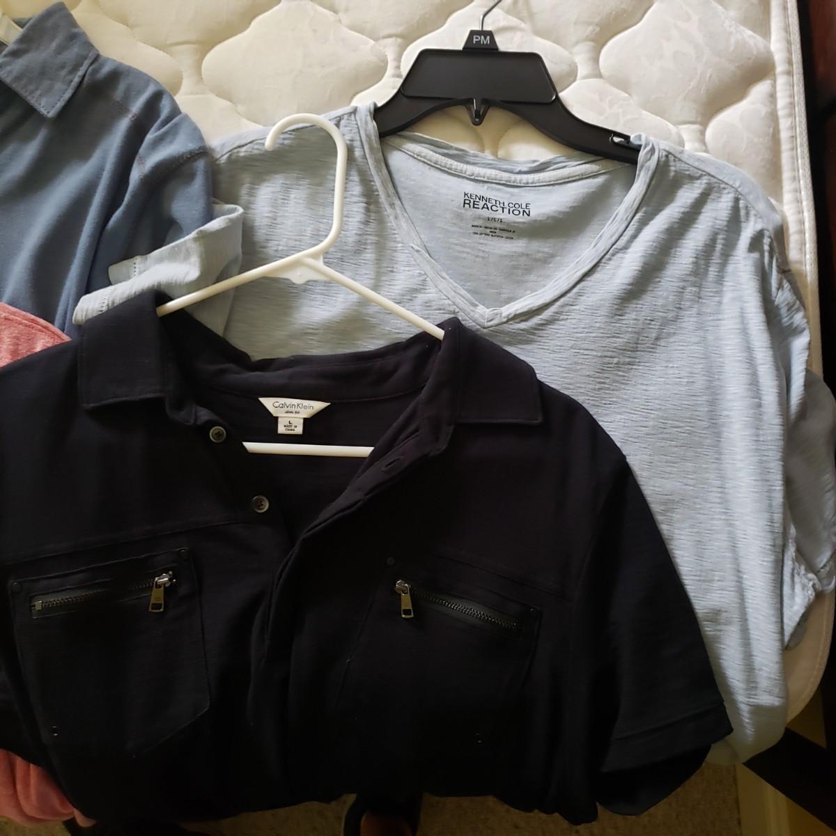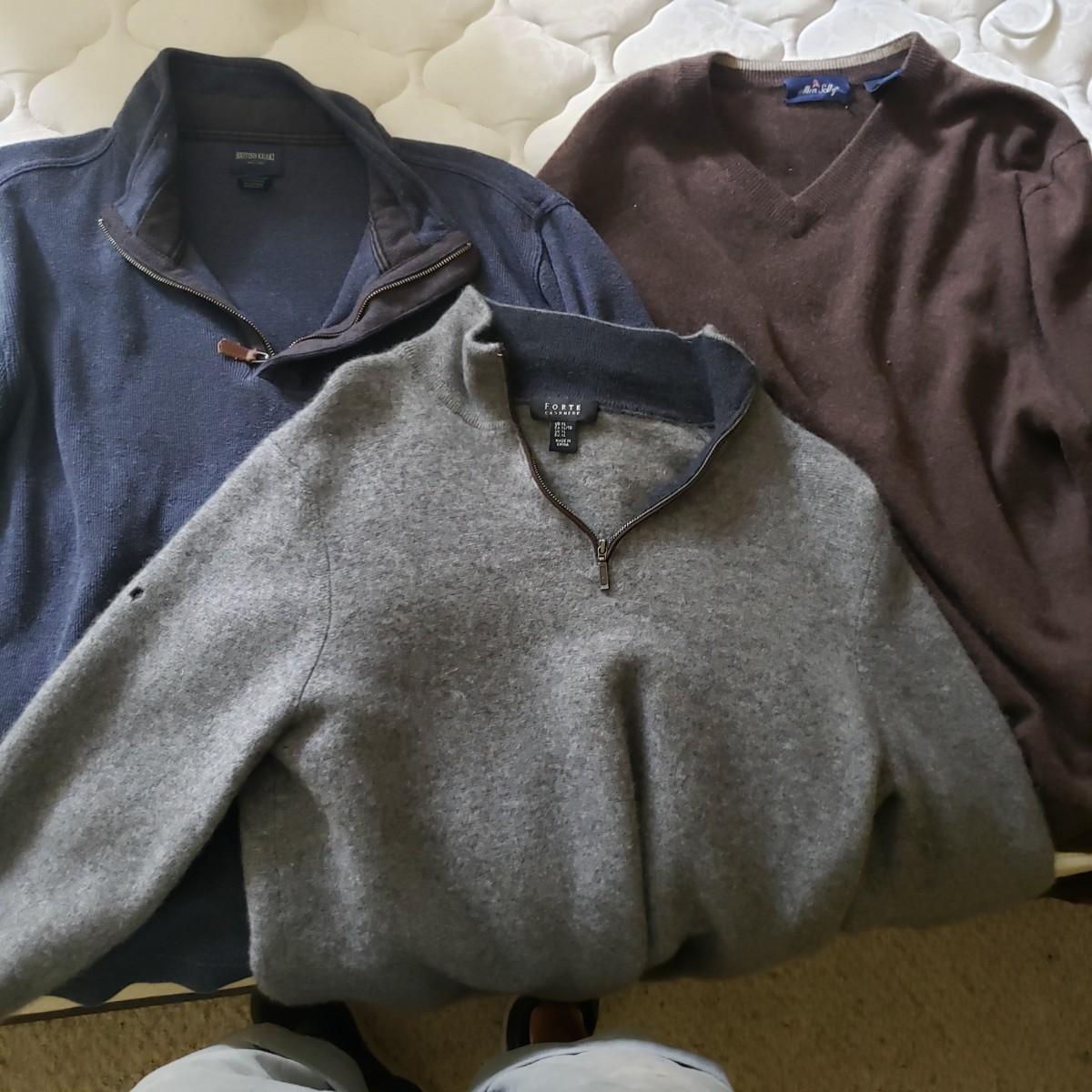 This lot has mostly medium sized name brand shirts and sweaters, see pictures. The pants are pictured with their sizes, as they vary slightly. Names like, North Face, Tommy Hilfiger, Gap, Lucky Brand, Eighty-Eight and many more! See pictures for all details!