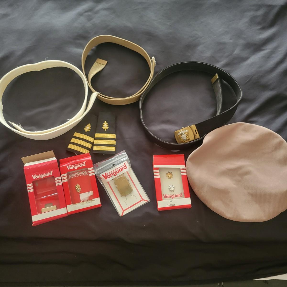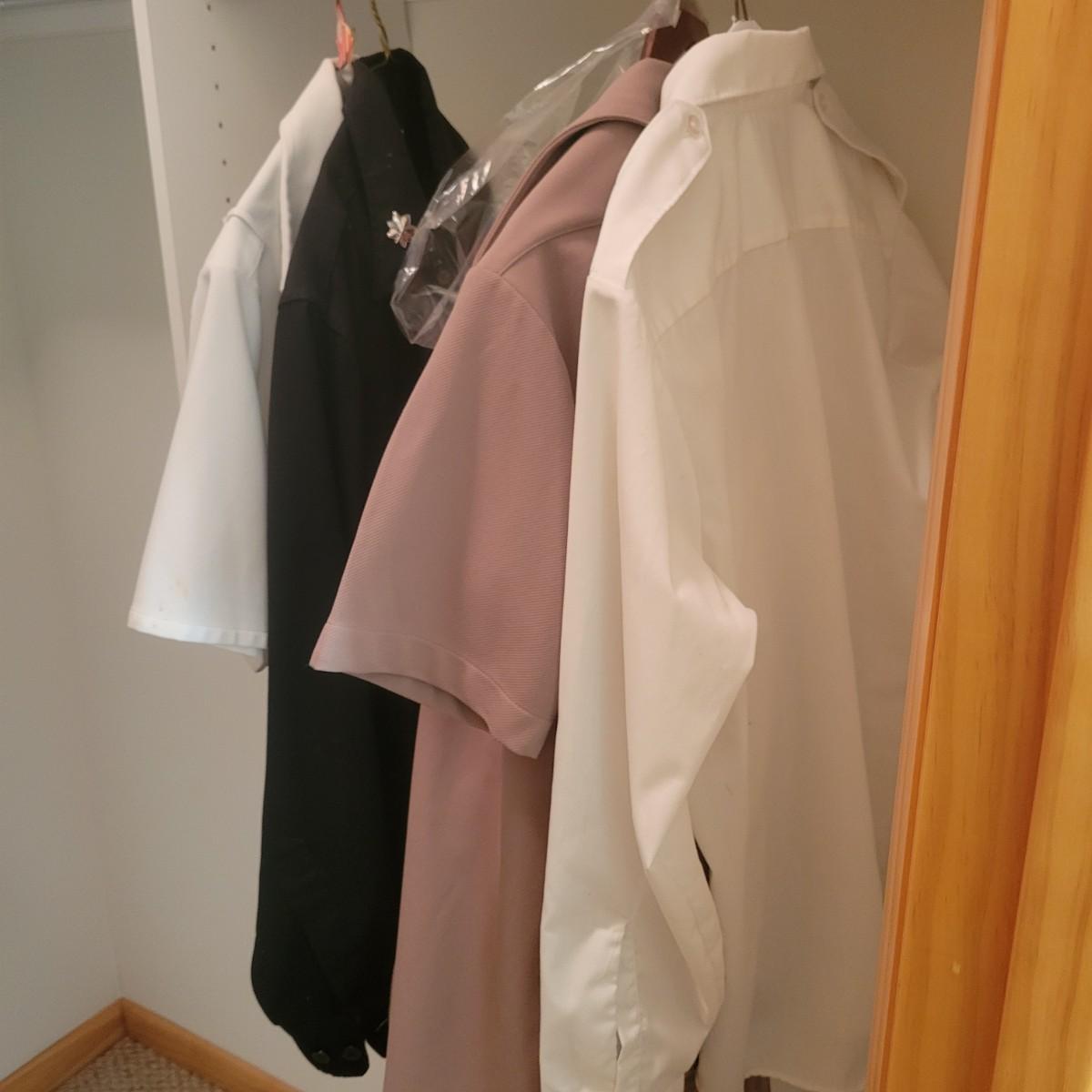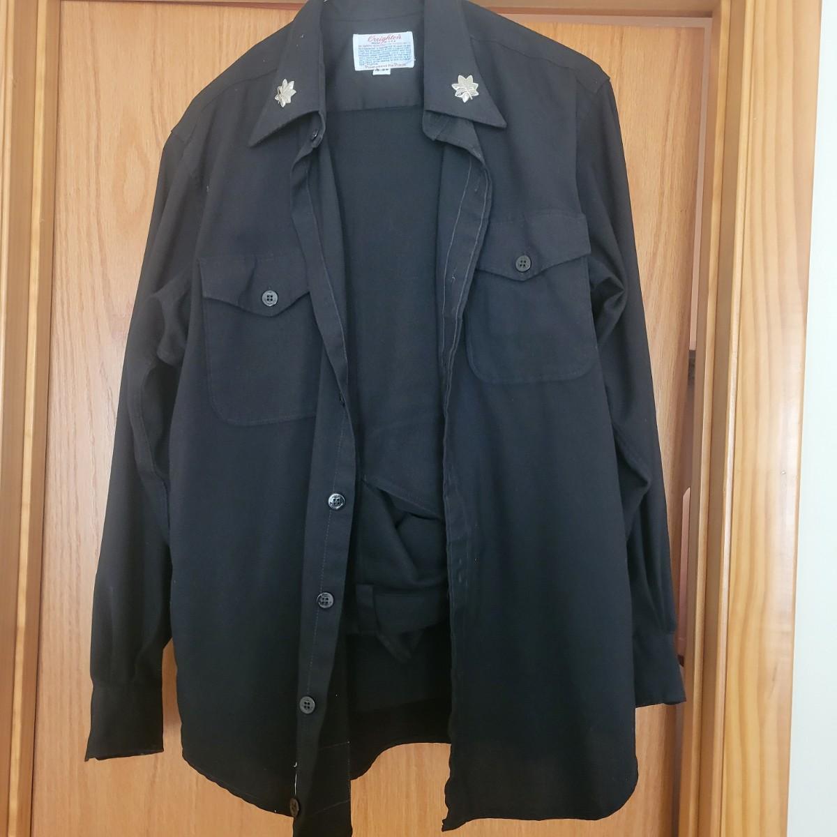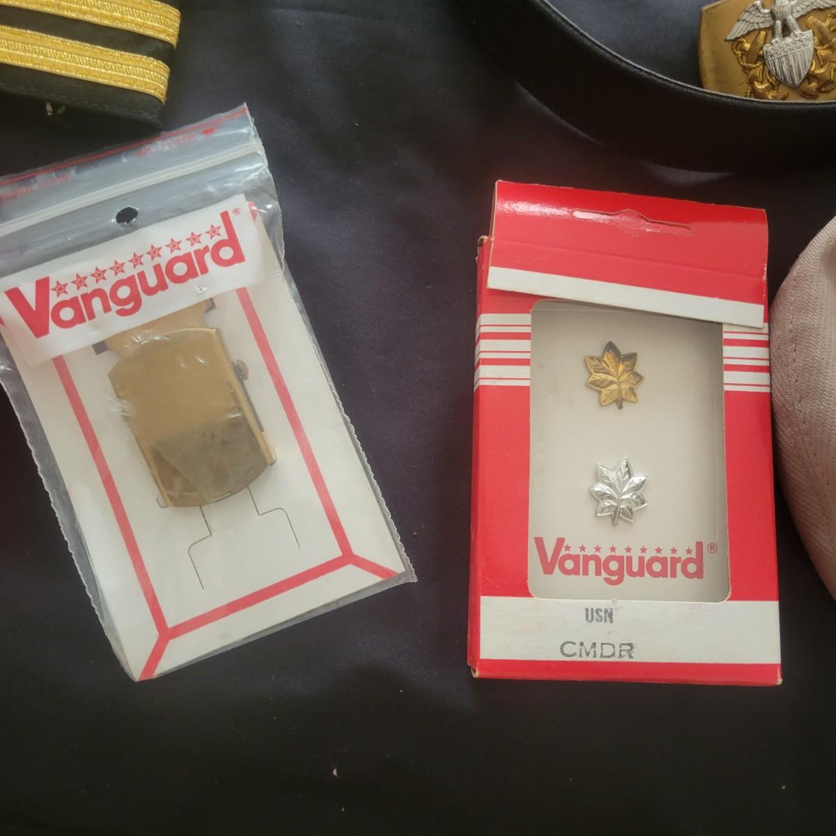 An assortment of men's navy uniforms. This lot includes whites, khakis and a deep blue uniform. They appear to be sized to 16-33 for shirts and 34 for pant waist size, but not all were labeled with size. The navy and white uniforms include a pair of pants each, and the khakis has two shirts and three pairs of pants including accessories. Shipping available