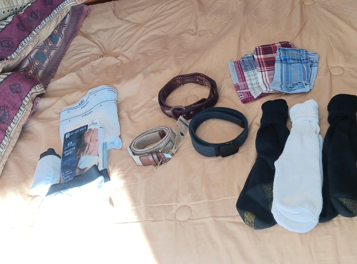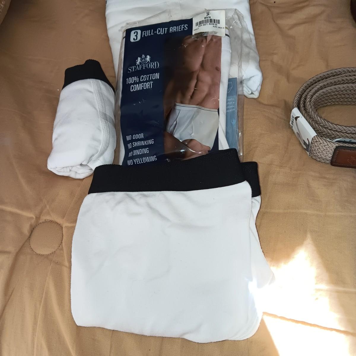 MEN'S NEW UNDERWEAR (34), 3 BELTS (38) SOCKS AND HANKIES