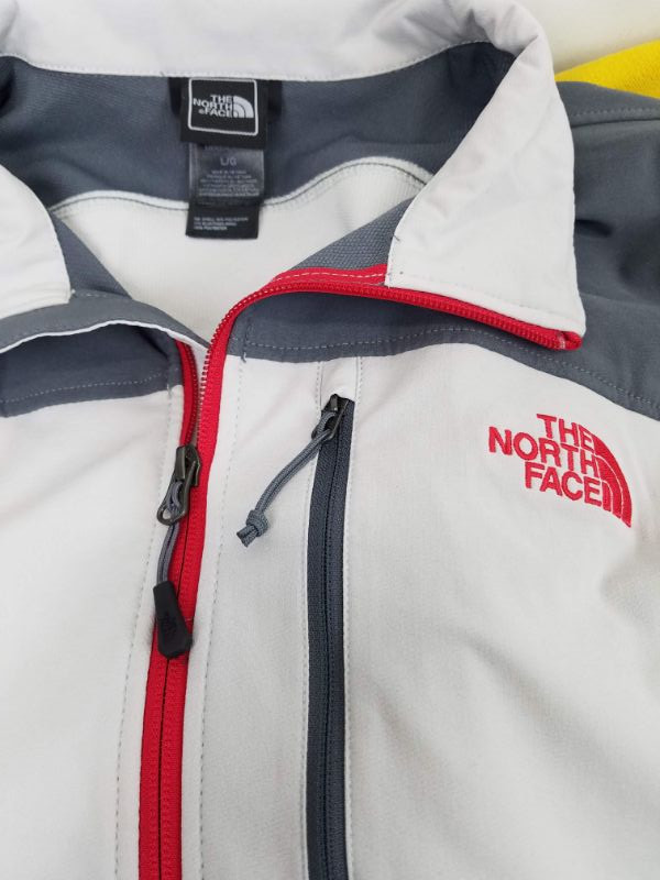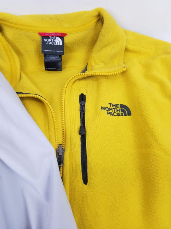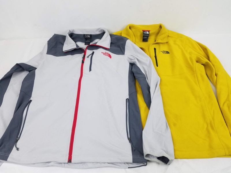 Men's North Face Jackets Size Large, Qty 2. 1 Gray/Red & 1 Mustard Yellow