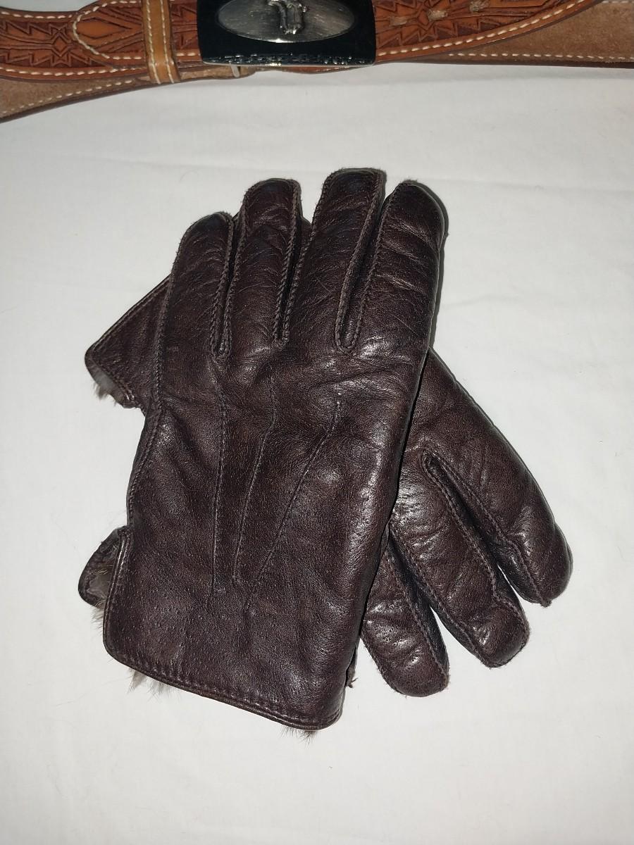 MENS OUTBACK JACK HAT-LEATHER FUR LINED GLOVES AND LEATHER BELT & BUCKLE