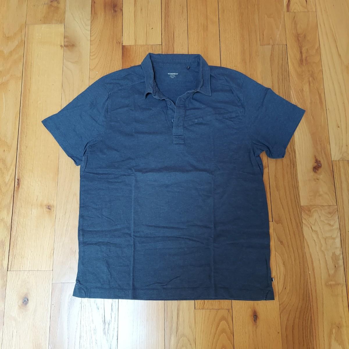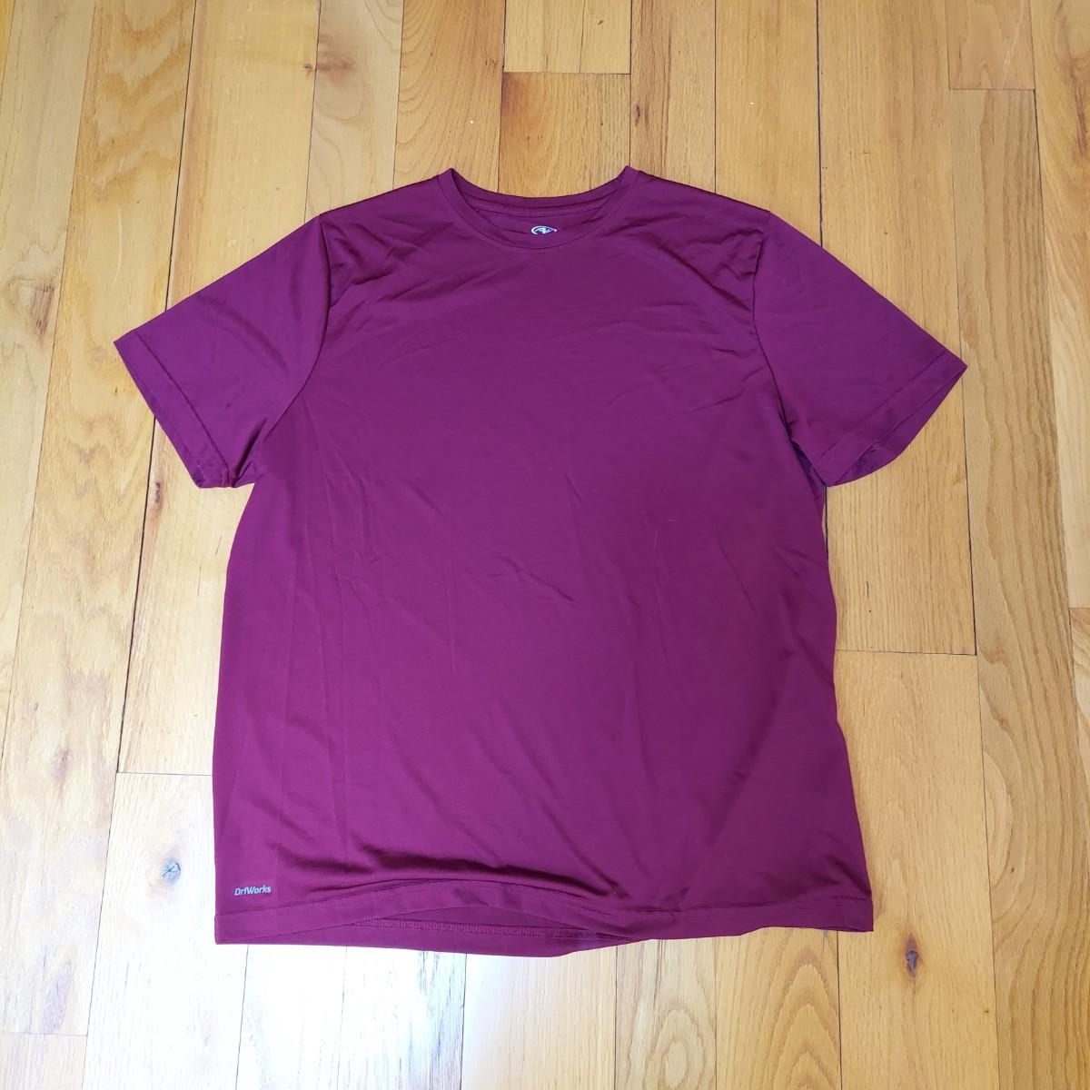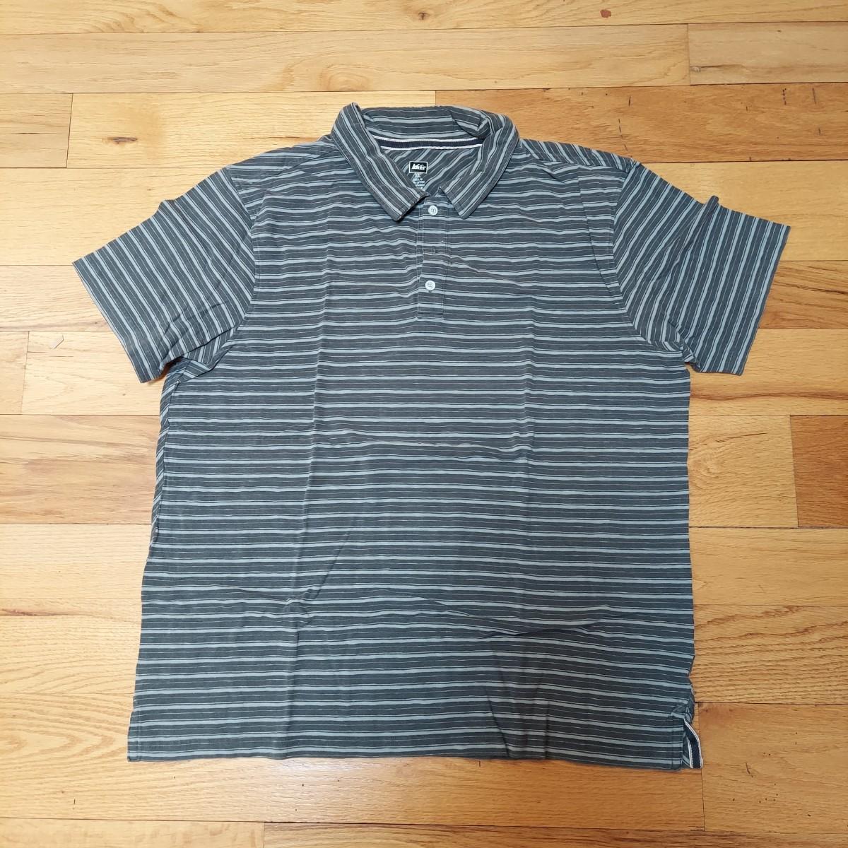 Large lot of men's outdoor wear shirts in sizes large and extra large. There are six polos, eleven tees and six long sleeve shirts.