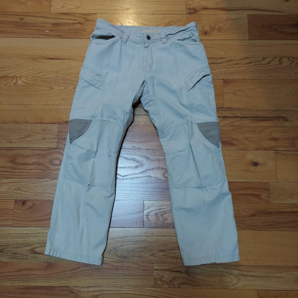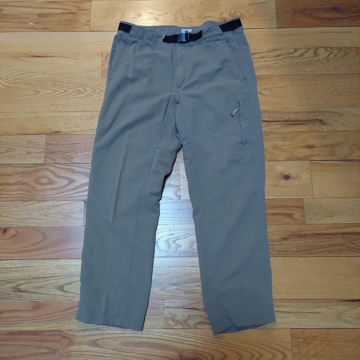 Five pairs of men's outdoor wear pants in an average size large. Brands include Mountain Hardware, REI, Columbia and more. Please see photos for details. Shipping available.