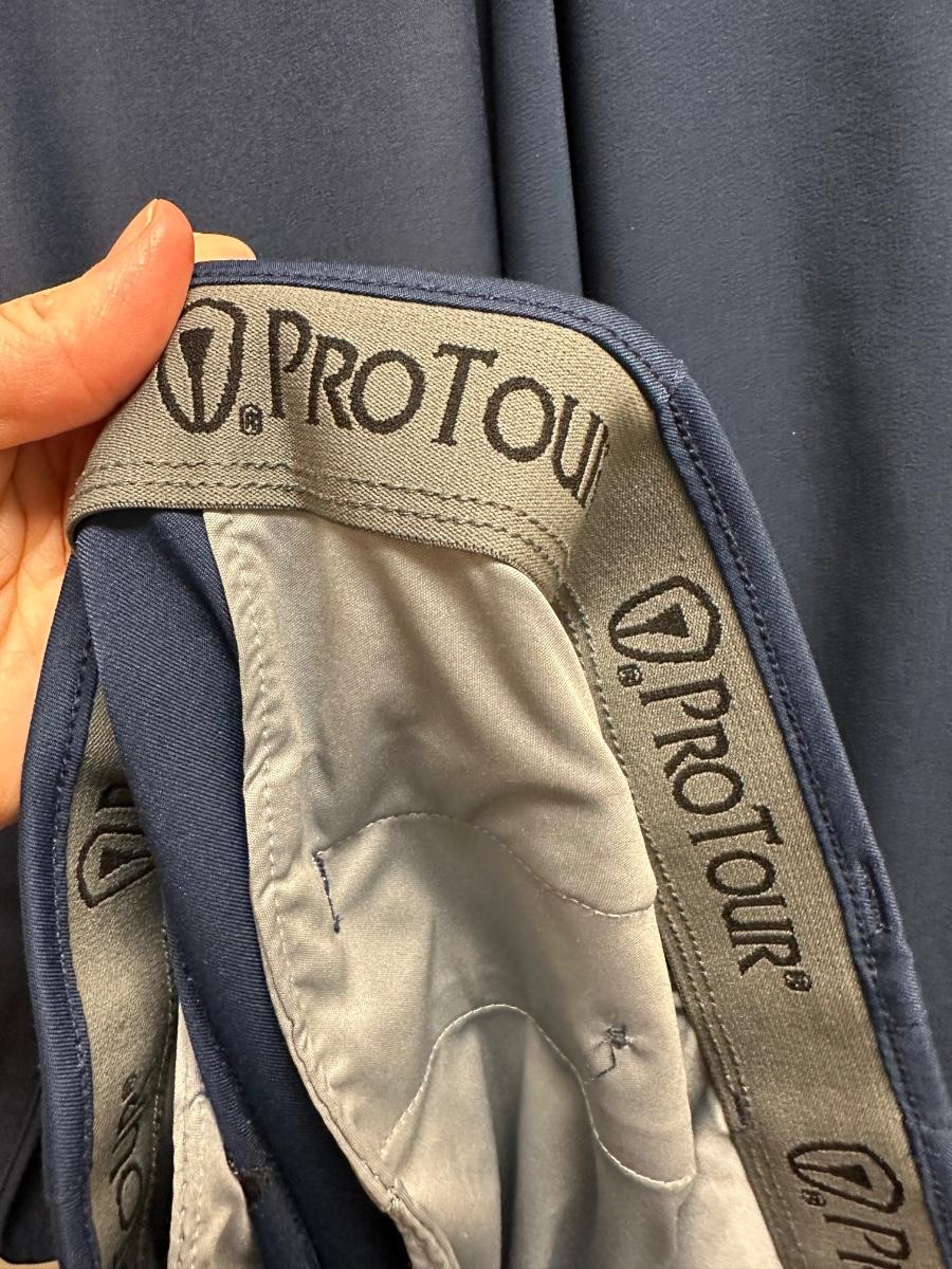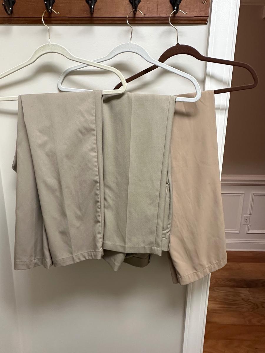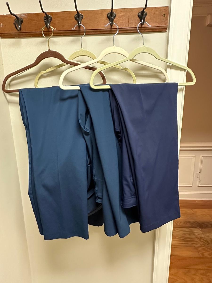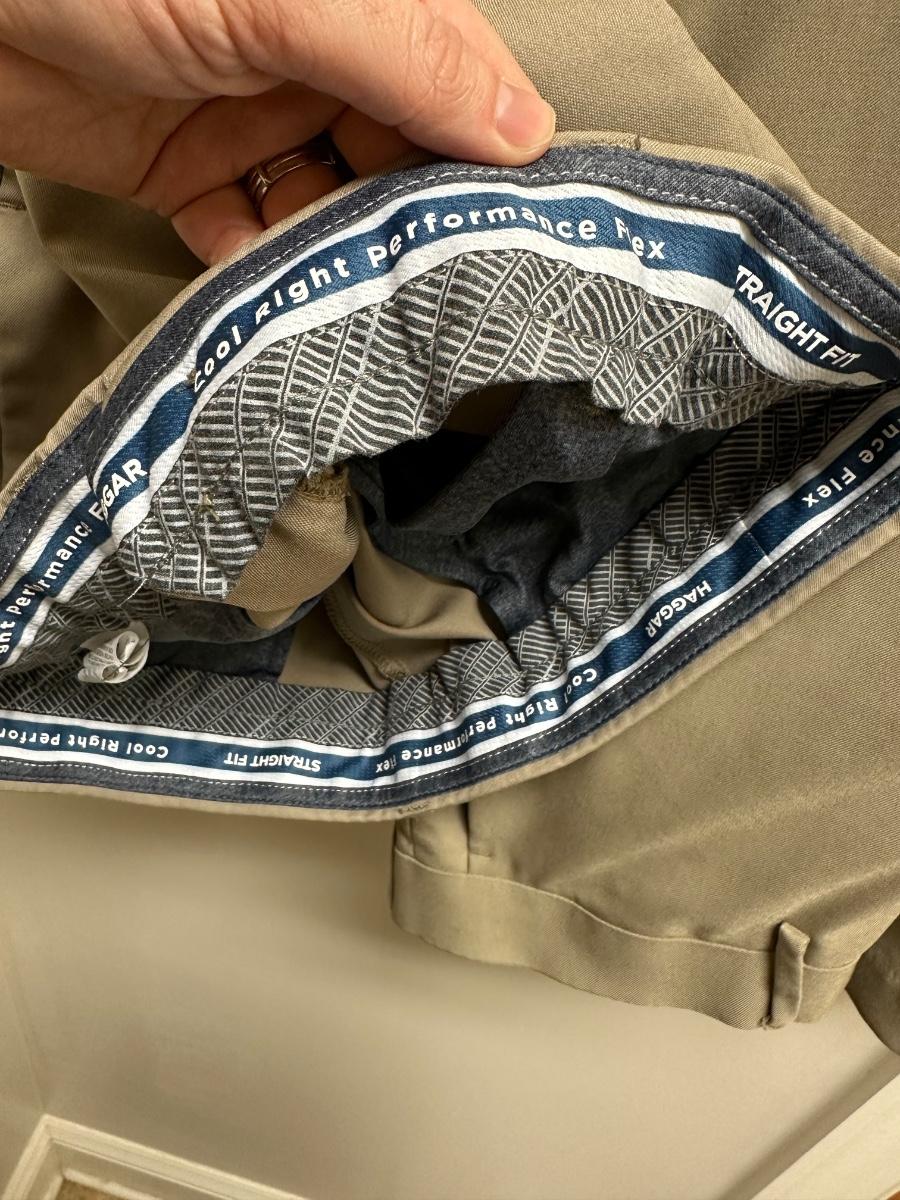 Vibrant, deep blues, khaki, black and grey. Including brands Pro Tour, Haggar, Greg Norman, BCG and Members / 12 long pants total — perfect for a day on the course or a day at the office!