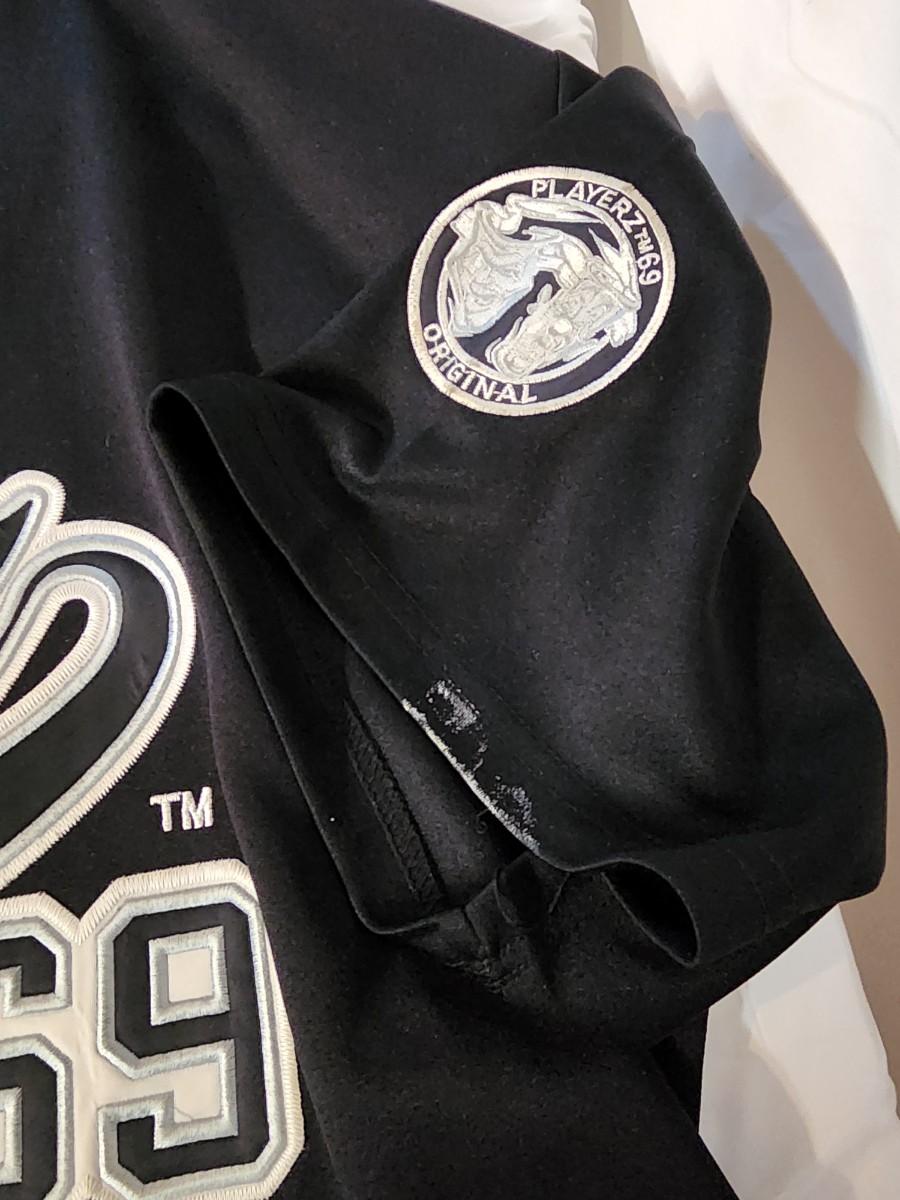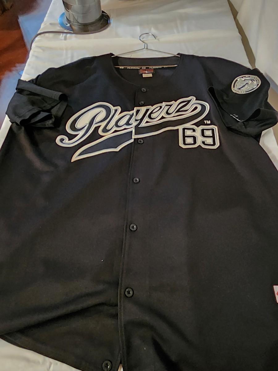 The Mens Playerz 69 Football Jersey is a stylish streetwear piece perfect for any football fan. This black button front jersey features the signature Playerz 69 branding, making it a unique and eye-catching addition to any sports memorabilia collection. Made for men in a size 3XL, this jersey is a must-have for those looking to show off their team spirit in a fashionable way.