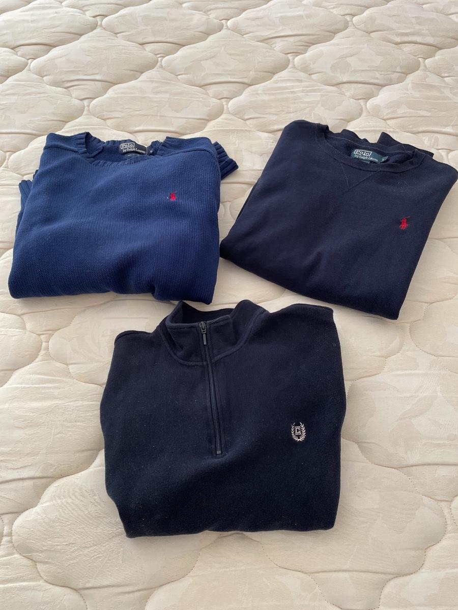 #98 Men’s POLO Ralph Lauren Navy Sweaters L/XL Lot of 3