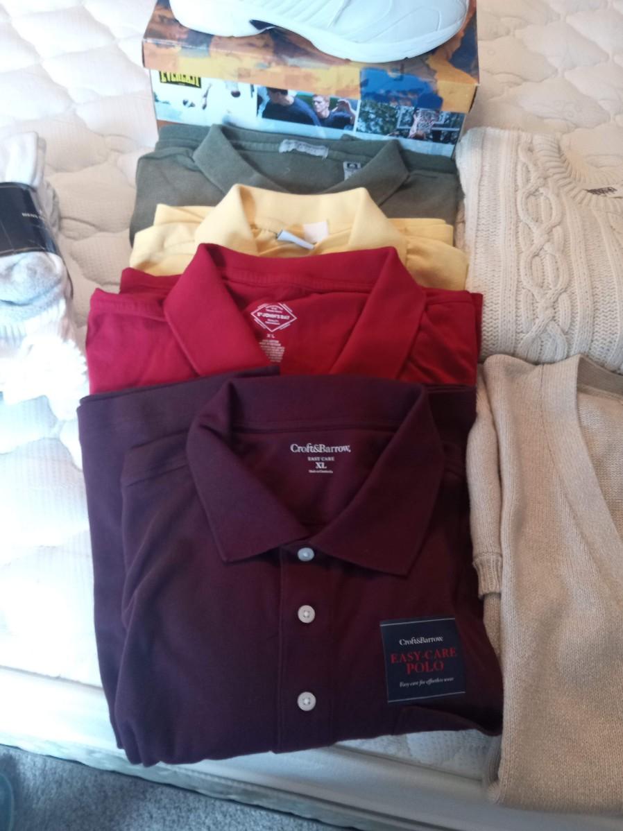 MEN'S POLO SHIRTS & SWEATERS XL, EVERLAST SHOES 10.5