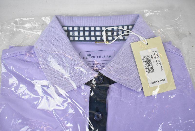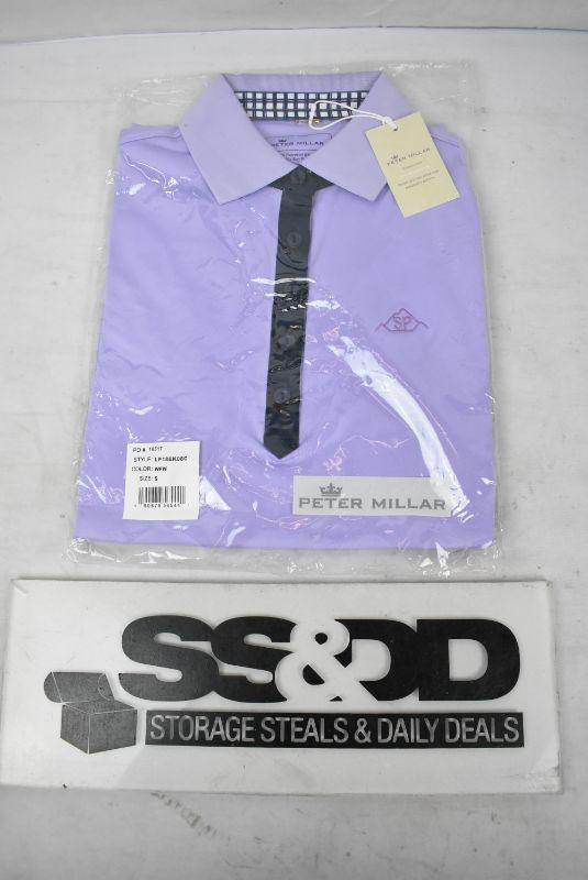 Men's Polo Style Short Sleeve Shirt by Peter Millar, Purple w/ Navy. Size Small - New