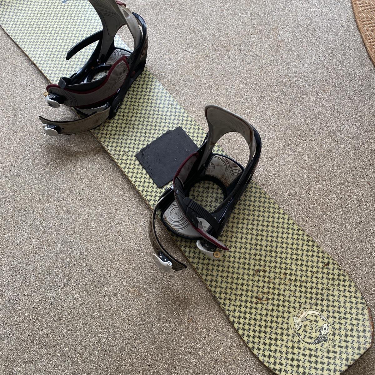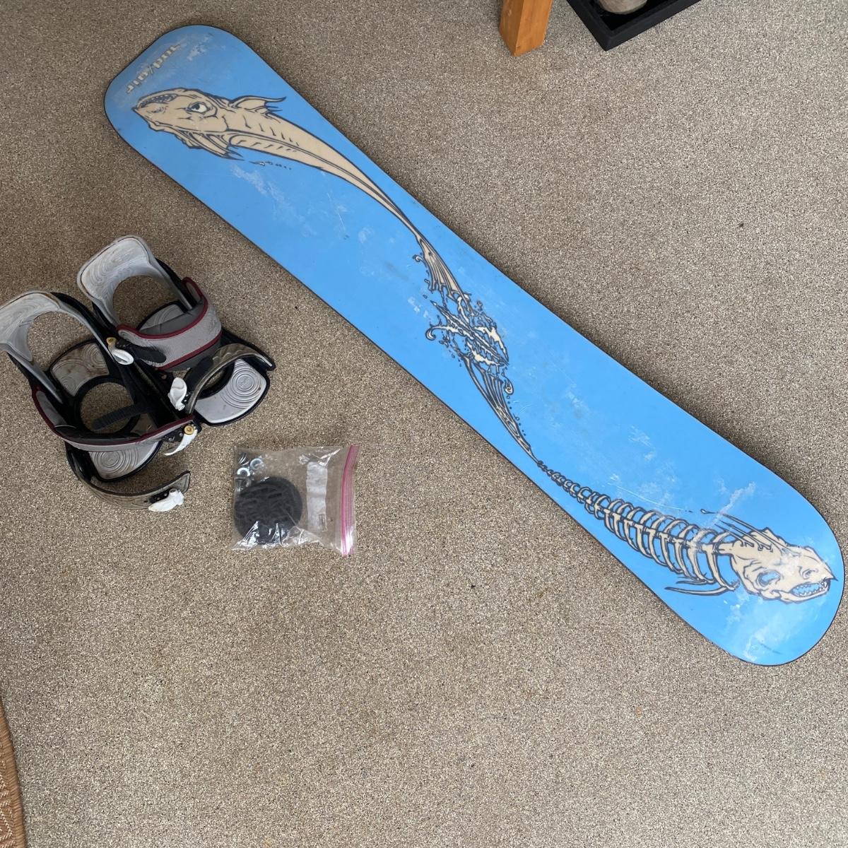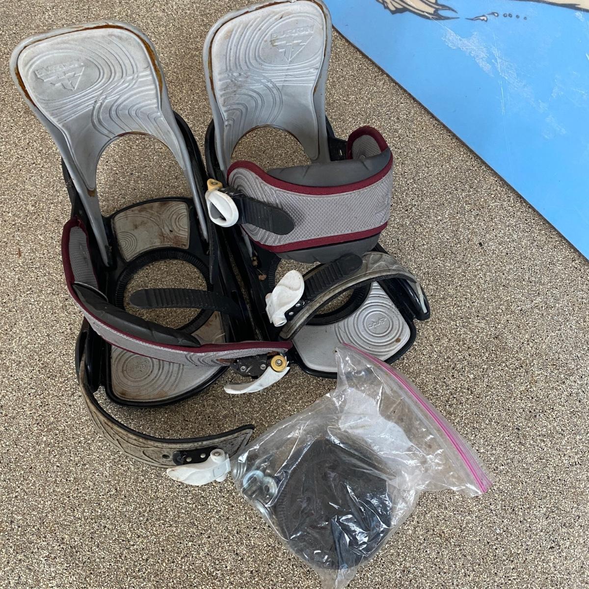 Men’s snowboard by Rad-Air and Burton bindings. Board measures 59.5” by 10”. Binding are not attached but all hardware appears to be there. There is some rust on edges. Needs tune up. Local pick up.
