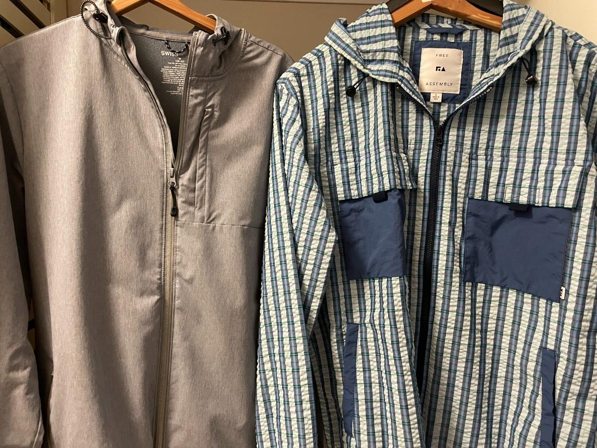 1 Swiss Tech Rain Jacket - Medium, 1 Free Assembly Jacket w/Hood - Large